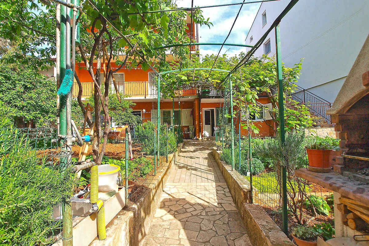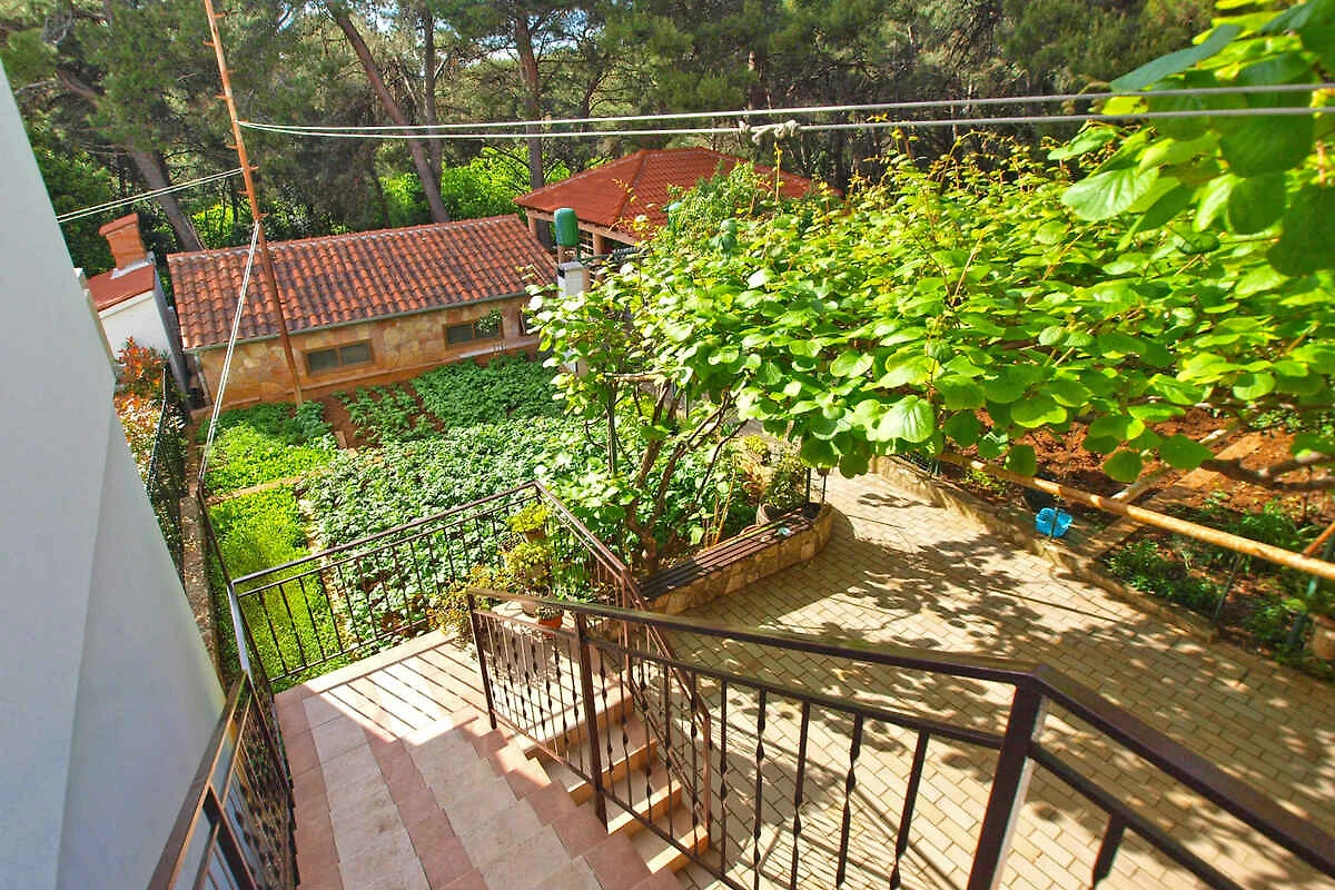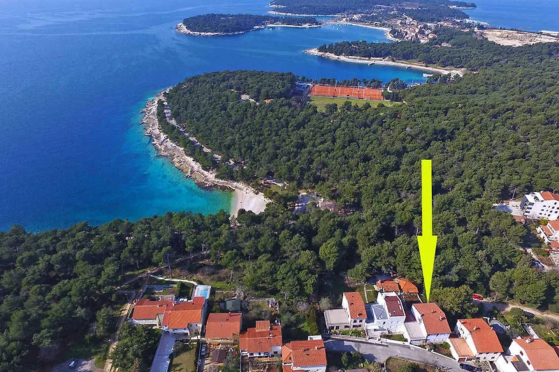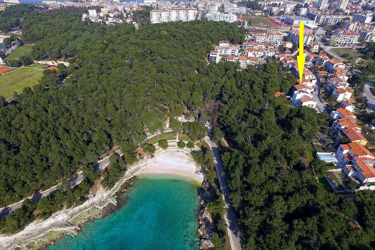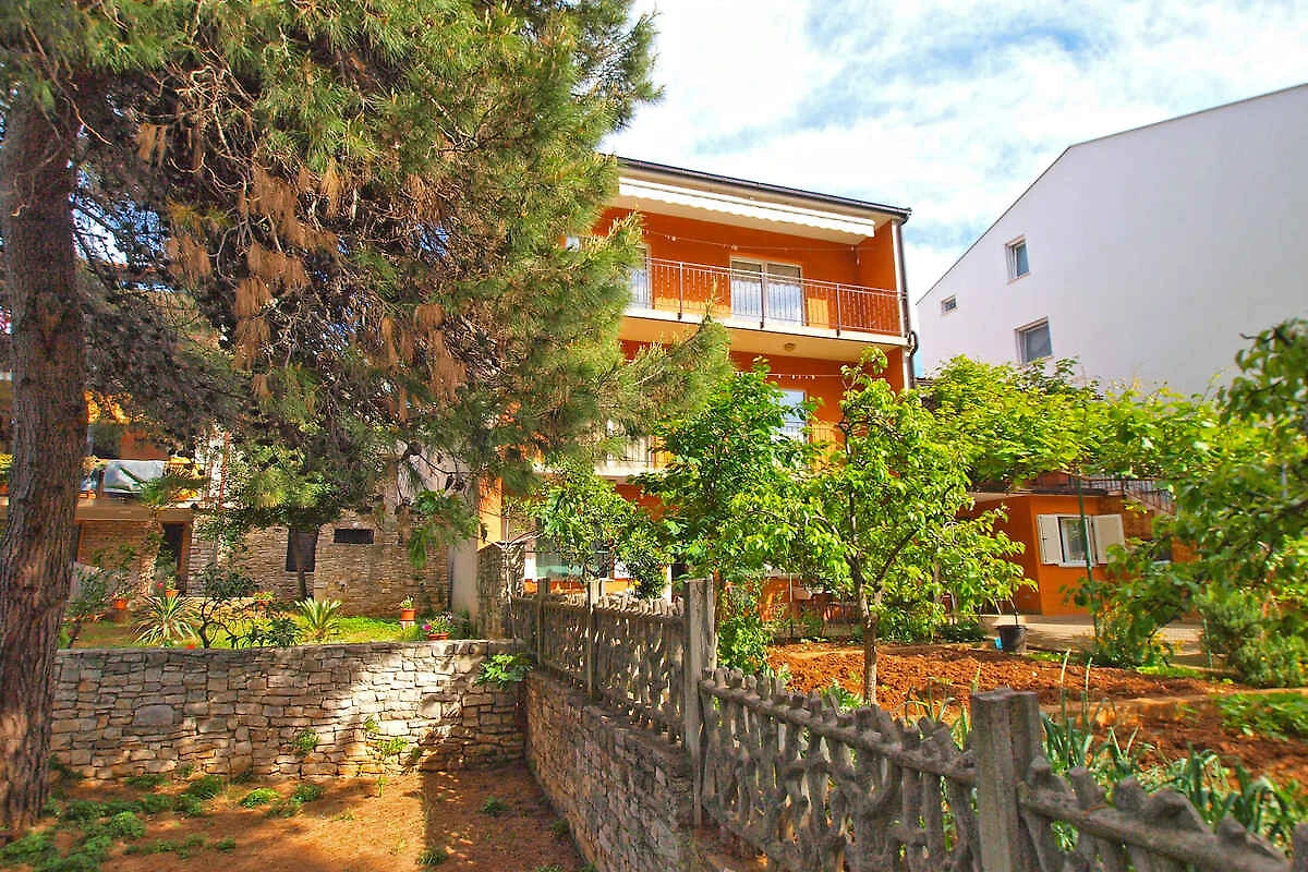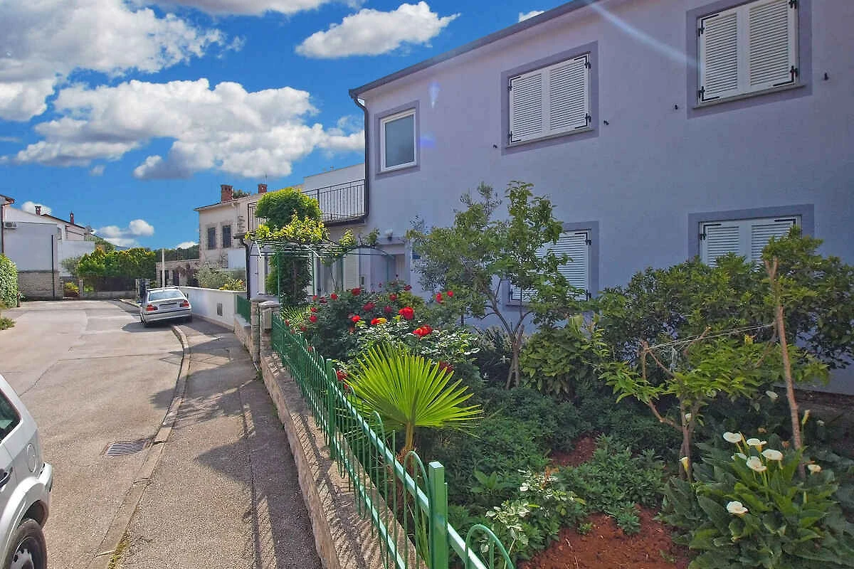 Pula. L' appartamento vacanze si trova in una trama del giardino chiuso, grande 80 mq con fiori e alberi, delimitata da una recinzione. L'accesso avviene vicino a una strada secondaria (asfaltata). Parcheggio sulla proprietà.