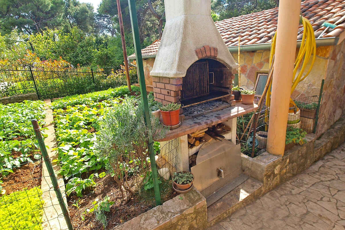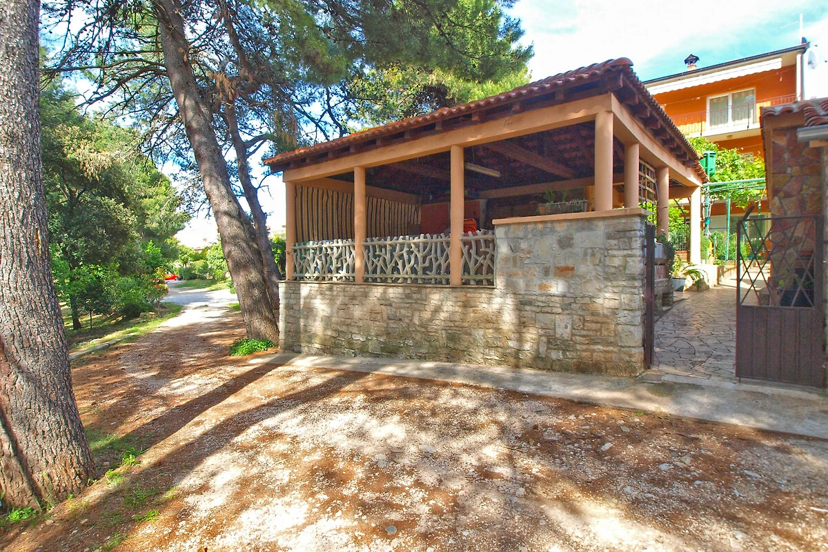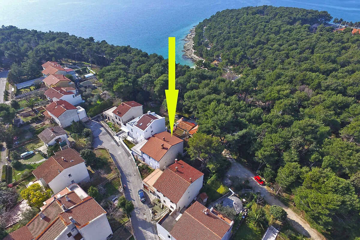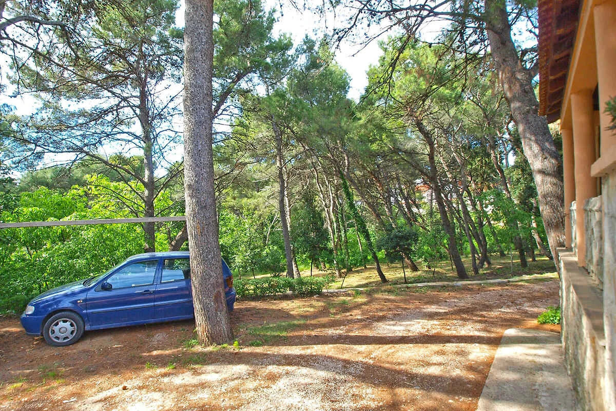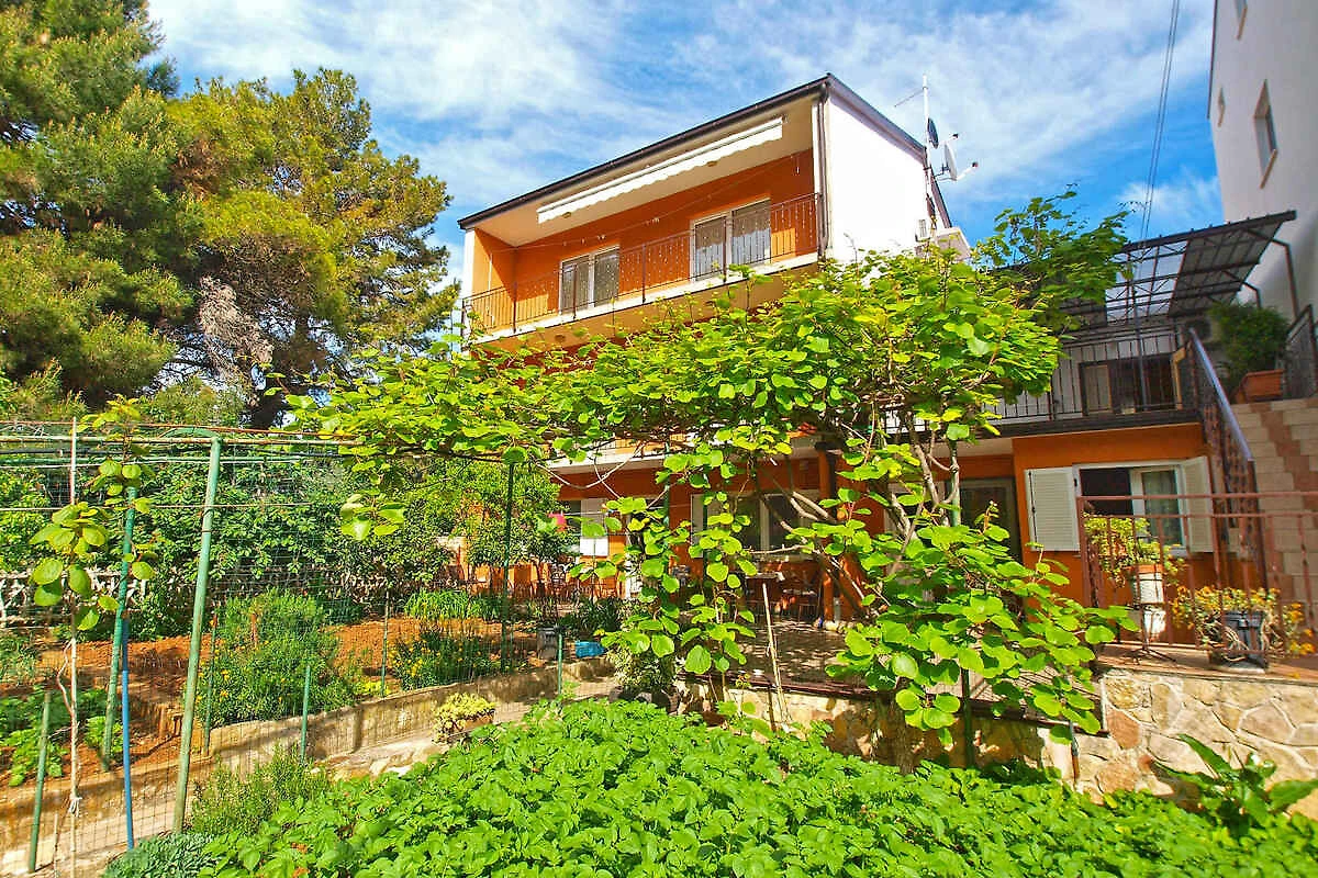 Pula. L' appartamento vacanze si trova in una trama del giardino chiuso, grande 80 mq con fiori e alberi, delimitata da una recinzione. L'accesso avviene vicino a una strada secondaria (asfaltata). Parcheggio sulla proprietà.