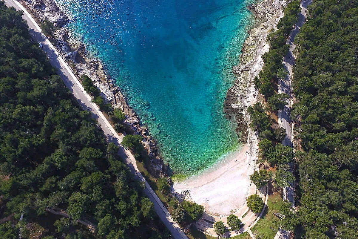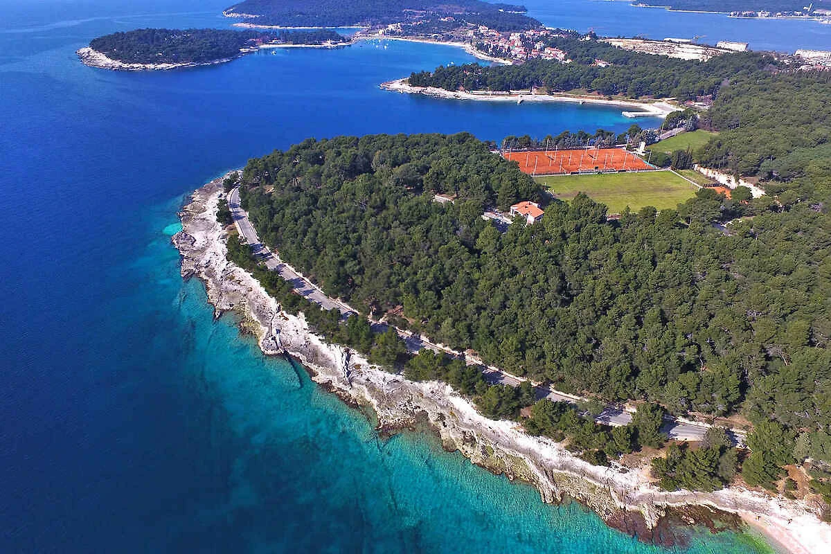 mare adriatico 100 m a Pula (spiaggia 100 m a Pula con ghiaia e stabilimenti balneari).