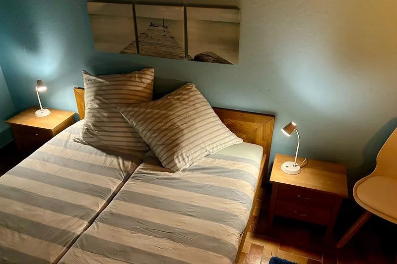 Abbiamo avuto il piacere di trascorrere alcuni giorni meravigliosi nella casa vacanze (casa a schiera) della famiglia Ammon. La casa era estremamente pulita e ben attrezzata, il che ha reso il nostro soggiorno molto piacevole. In particolare, il camino aperto e la sauna comune ci hanno deliziato durante le giornate di pioggia. Il supermercato con panetteria integrata era comodamente raggiungibile a pochi minuti a piedi. La passeggiata al porto e alla spiaggia durava circa 25 minuti, anche se potrebbe richiedere un po' più di tempo con i bambini.