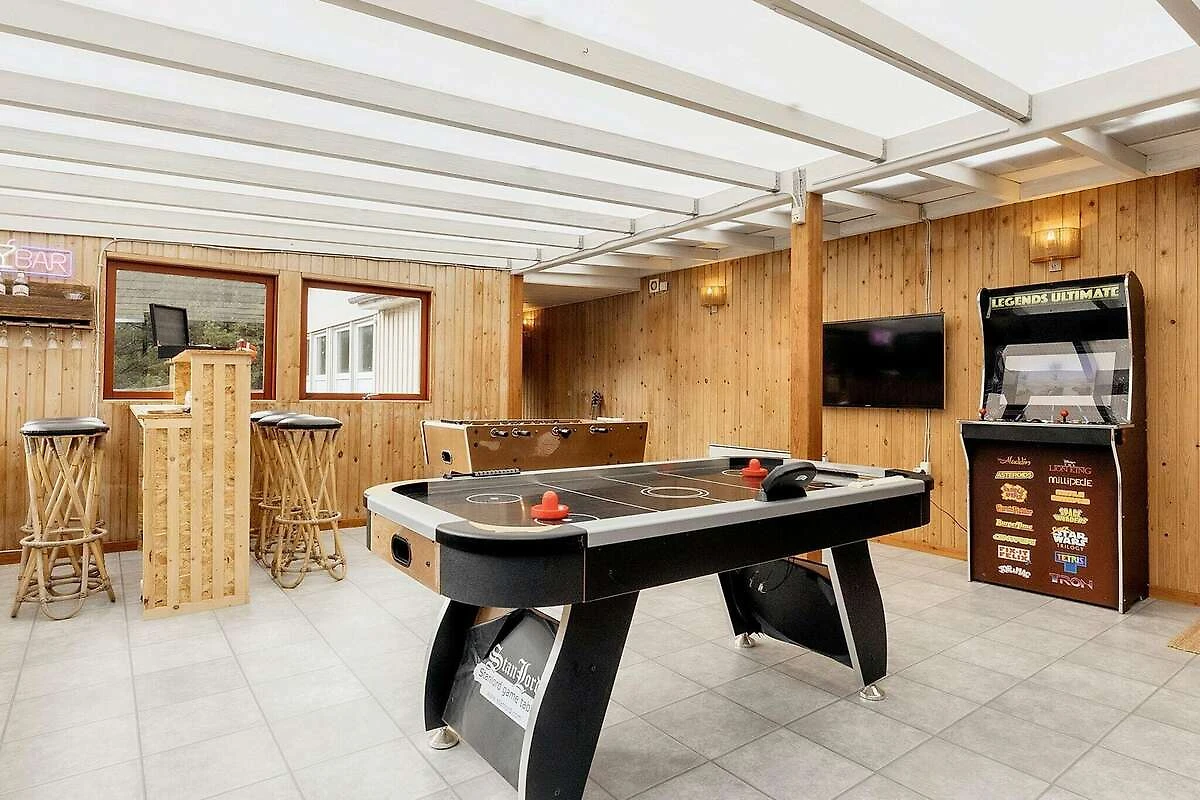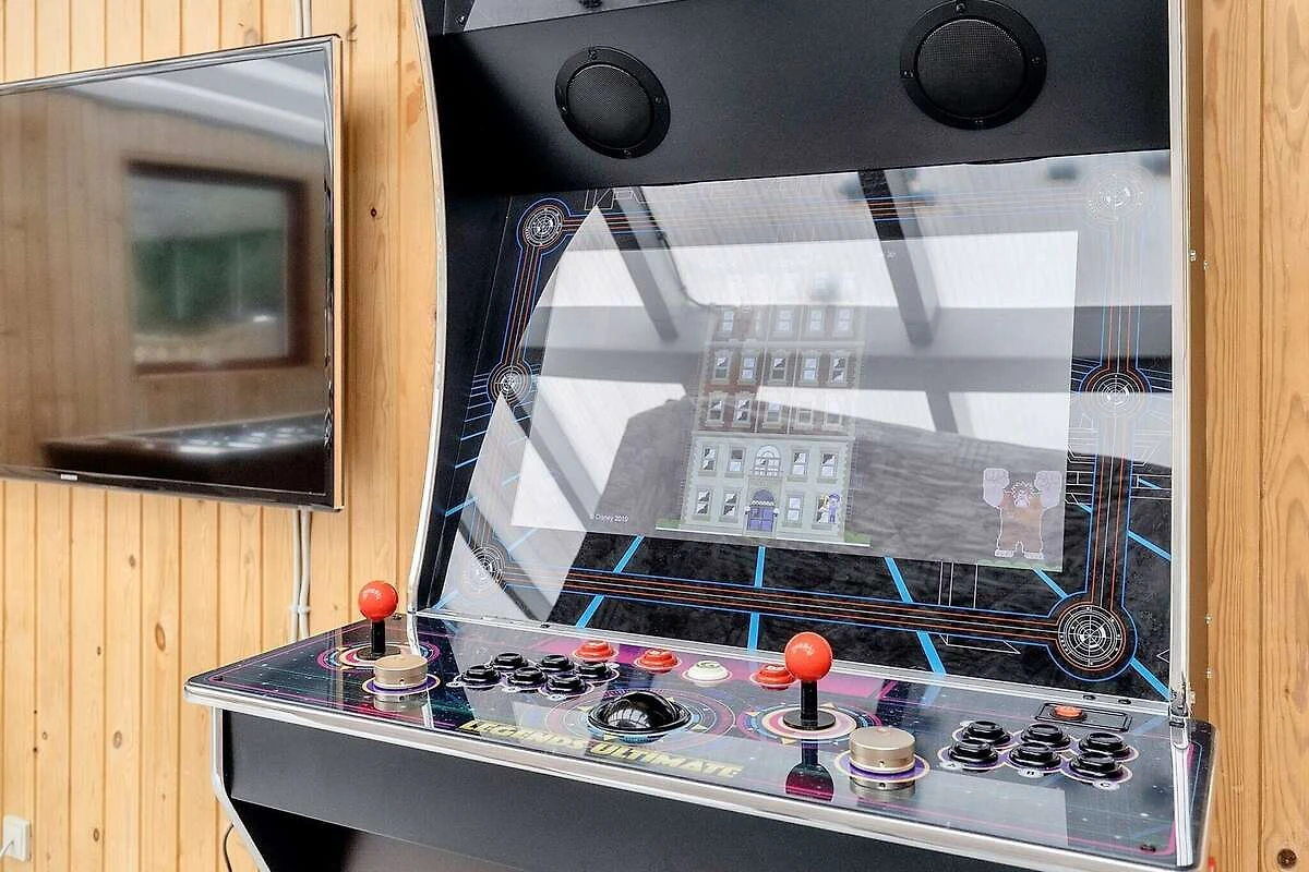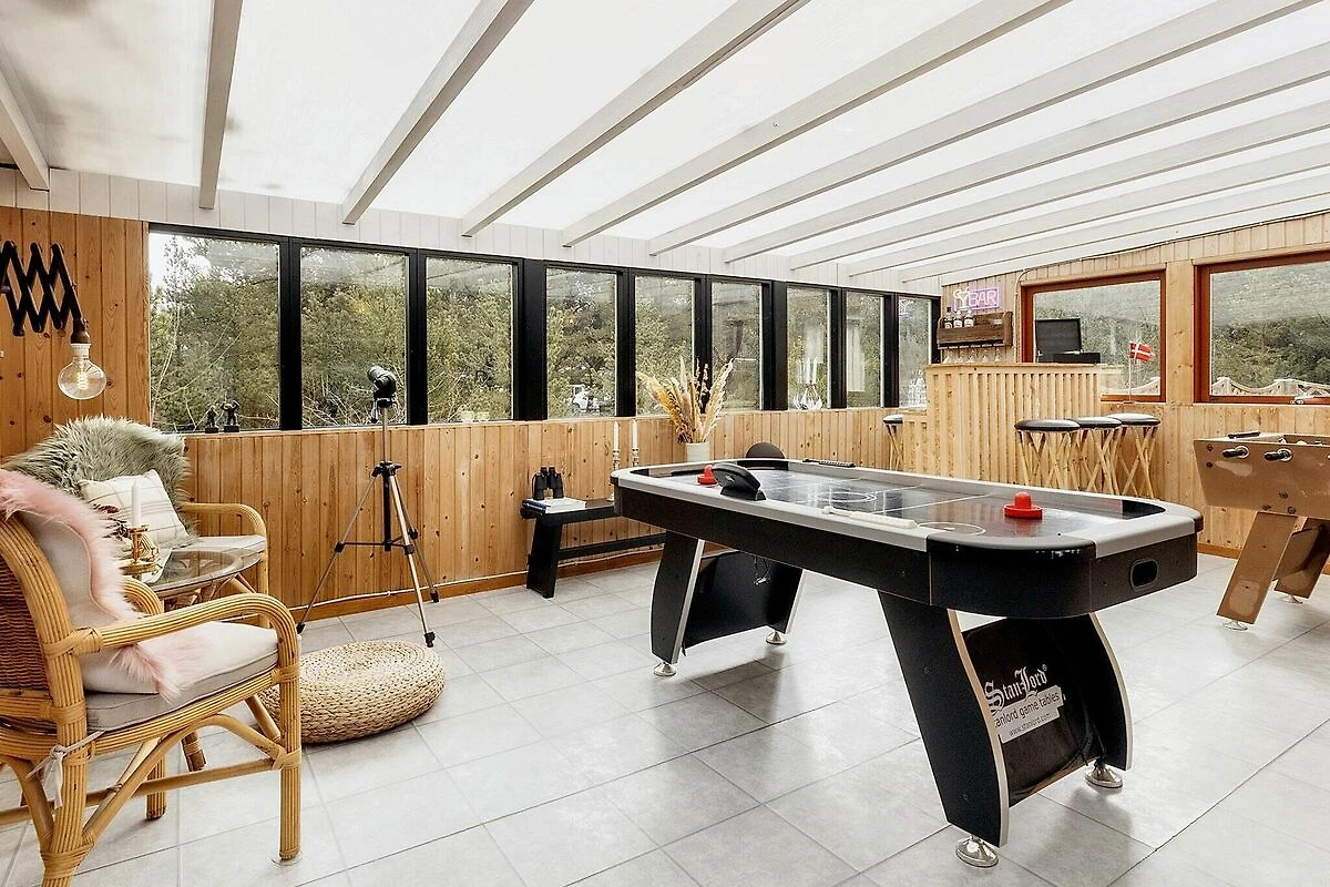 Cucina separata(mobile cucina(elettrico), caffettiera, forno a microonde, lavastoviglie, frigorifero(+ congelatore)), Soggiorno/camera da letto(TV, seggiolone), Camera da letto(letto matrimoniale, letto per bambini), Camera da letto(letto matrimoniale), Camera da letto(2x letto singolo), Camera da letto(2x letto singolo), Bagno(asciugabiancheria, lavabo, doccia, WC, lavatrice), Bagno(lavabo, doccia, WC), vasca idromassaggio(all’interno, riscaldata, 2 persone), sauna(all’interno, 5 persone), riscaldamento(elettrico), terrazza, giardino, mobili da giardino, lettini prendisole, piscina(all’interno), giochi per bambini, biliardino, airhockey, termopompa aria-acqua