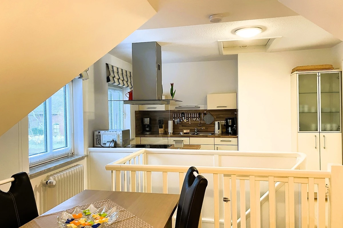 Für stark gebehinderten Personen nicht so geeignet wegen der verhältnismäßigen steilen Treppe. Die Glasumrandung beim Lüfter über dem Herd recht unglücklich.