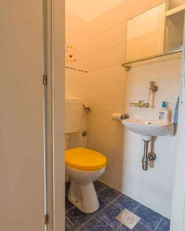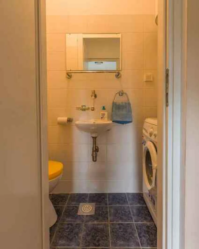 L'ingresso del vostro appartamento si trova al 2. piano e conduce direttamente nel soggiorno. Soggiorno con angolo di seduta, TV e zona pranzo (4 posti). Camera da letto con 1 letto matrimoniale. Camera da letto con 1 letto singolo e 1 letto aggiuntivo su letto pieghevole. Cucina con zona pranzo (4 posti), fornello elettrico (4 fornelli), forno, cappa aspirante, frigorifero (scomparto del ghiaccio), caffettiera, tostapane e bollitore elettrico. Bagno con lavatrice, 1 lavandino e WC. Bagno con vasca da bagno, 1 lavandino, WC, asciugacapelli e finestra.