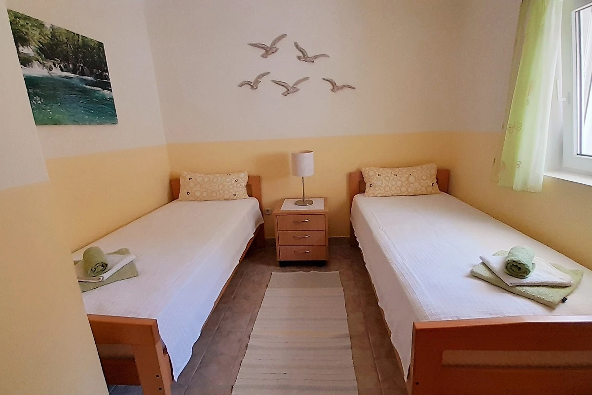 2 accoglienti appartamenti per le vacanze, in cui non manca nulla. Un bellissimo terreno ben curato con una vista mozzafiato sull'idilliaco Vinjerac, il mare blu e le montagne del Velebit. La spiaggia è raggiungibile a piedi in pochi minuti. L'acqua è cristallina e offre le migliori condizioni per nuotare e fare snorkeling. Il luogo è il punto di partenza ideale per molte attrazioni principali entro un massimo di. 90 minuti in auto per raggiungere - Laghi di Plitvice, cascate di Krka, montagna di Velebit con il Parco Nazionale di Paklenica e Tulove Grede, canyon di Zrmanja, isola di Pag, le città vecchie di Zara e Sebenico, per citarne solo alcuni. Particolarmente degni di nota sono i due ospiti Monika e Zlatko, che con la loro ospitalità e il loro modo affettuoso, con molti consigli preziosi e sempre nuovi, contribuiscono a far trascorrere un tempo meraviglioso. E così anche l'anno prossimo viaggeremo di nuovo da Monika e Zlatko a Vinjerac. Non vediamo l'ora!