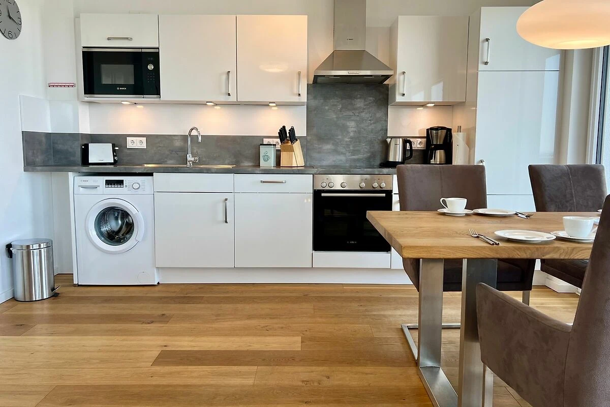 Perfekte Unterkunft für Rolli Fahrer . Top ausgestattet , sehr sauber und natürlich eine einmalige Lage ! Der Tiefgaragenplatz unterstreicht das hohe Niveau !