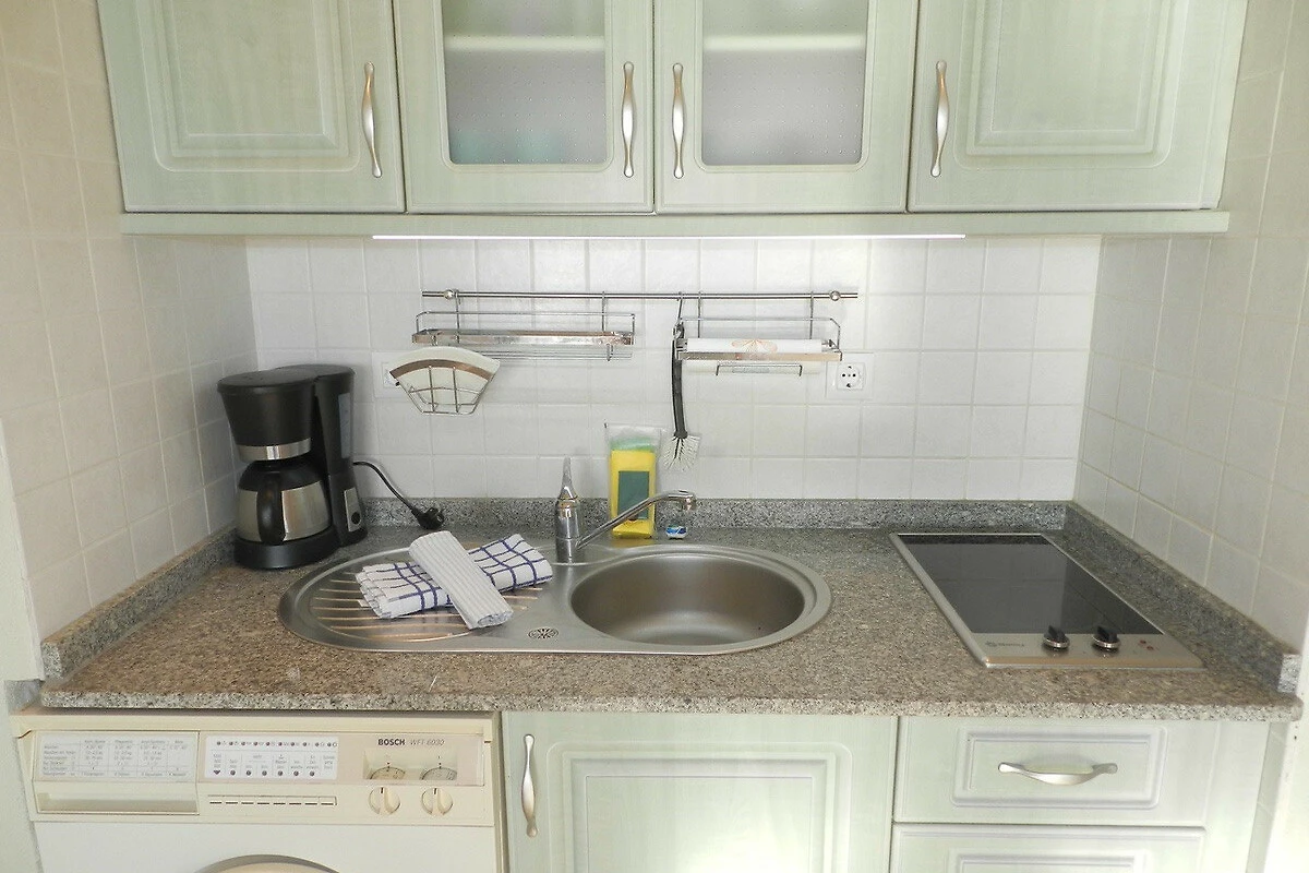 La cucina americana, a vetroceramica, è attrezzata con frigorifero, forno, congelatore, stoviglie/posate, utensili da cucina, caffettiera, tostapane e bollitore.