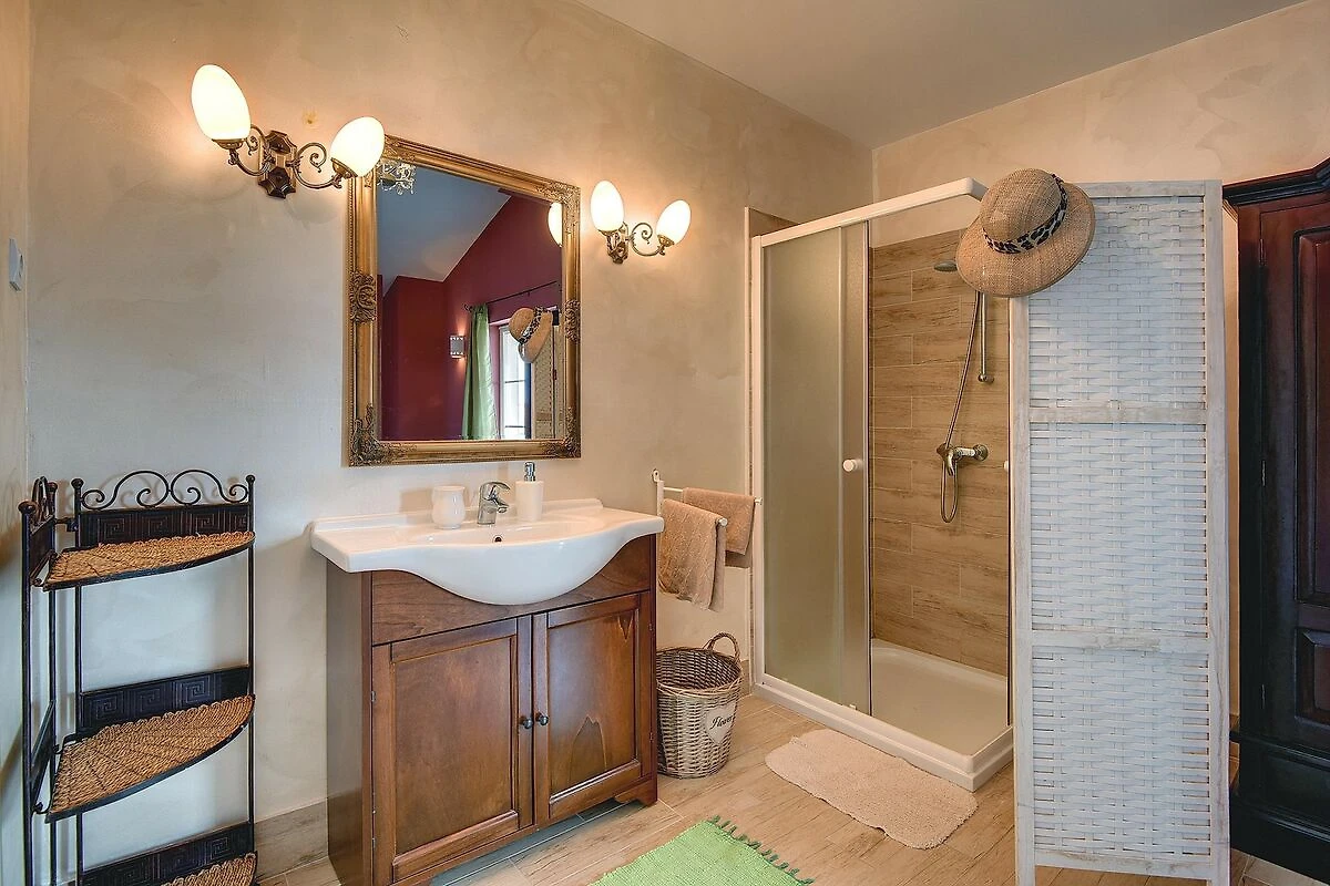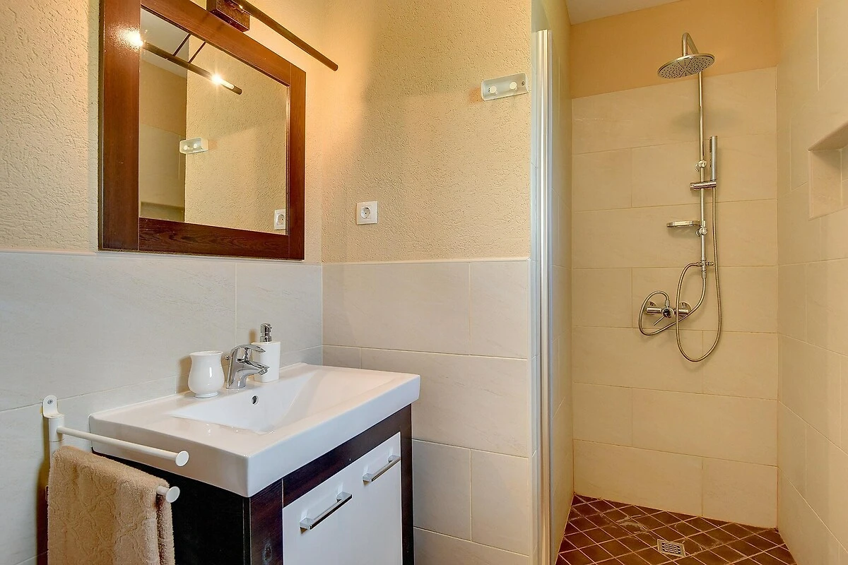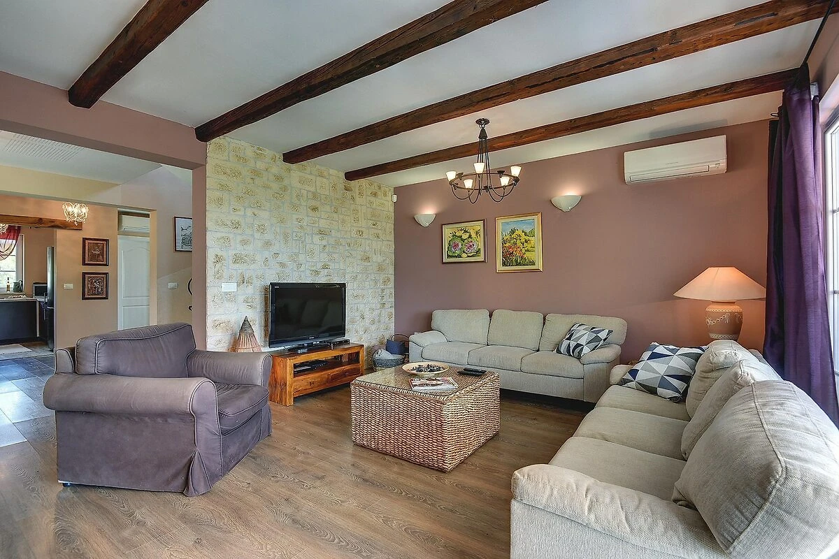 Villa si trova nel villaggio di Rakalj, a soli 2 chilometri dalle bellissime spiagge, è la perfetta combinazione di glamour e comfort. Il suo design elegante e l'attrezzatura completa completeranno la qualità della tua vacanza. Al centro del giardino ben curato si trova la piscina, dove potrete rilassarvi nel bagnoschiuma o sulle sedie a sdraio della terrazza soleggiata. C'è anche una terrazza coperta con barbecue, tavolo e sedie dove potrete gustare deliziosi piatti alla griglia. Proprio accanto alla piscina si trovano una sala da biliardo, una palestra, una sauna con doccia e servizi igienici separati.