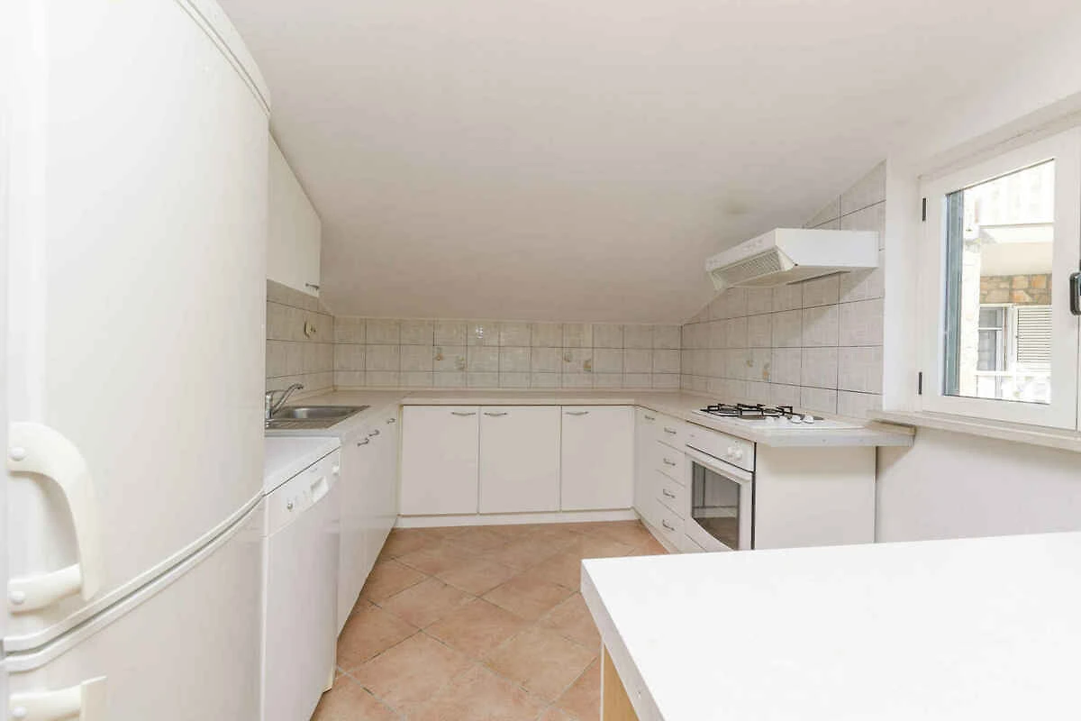 Soggiorno. 3 camere da letto tutto a (10 mq) con 1 letto matrimoniale. Angolo cucina nel soggiorno con stufa a gas, forno, lavastoviglie e frigorifero. Bagno con doccia e WC.