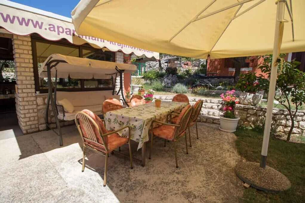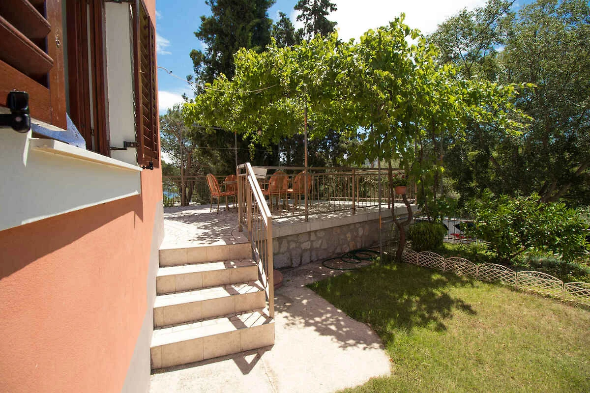 Cunski. L' appartamento vacanze si trova in una trama del giardino con fiori e alberi. L'accesso avviene attraverso una strada (asfaltata). Parcheggio sulla proprietà.