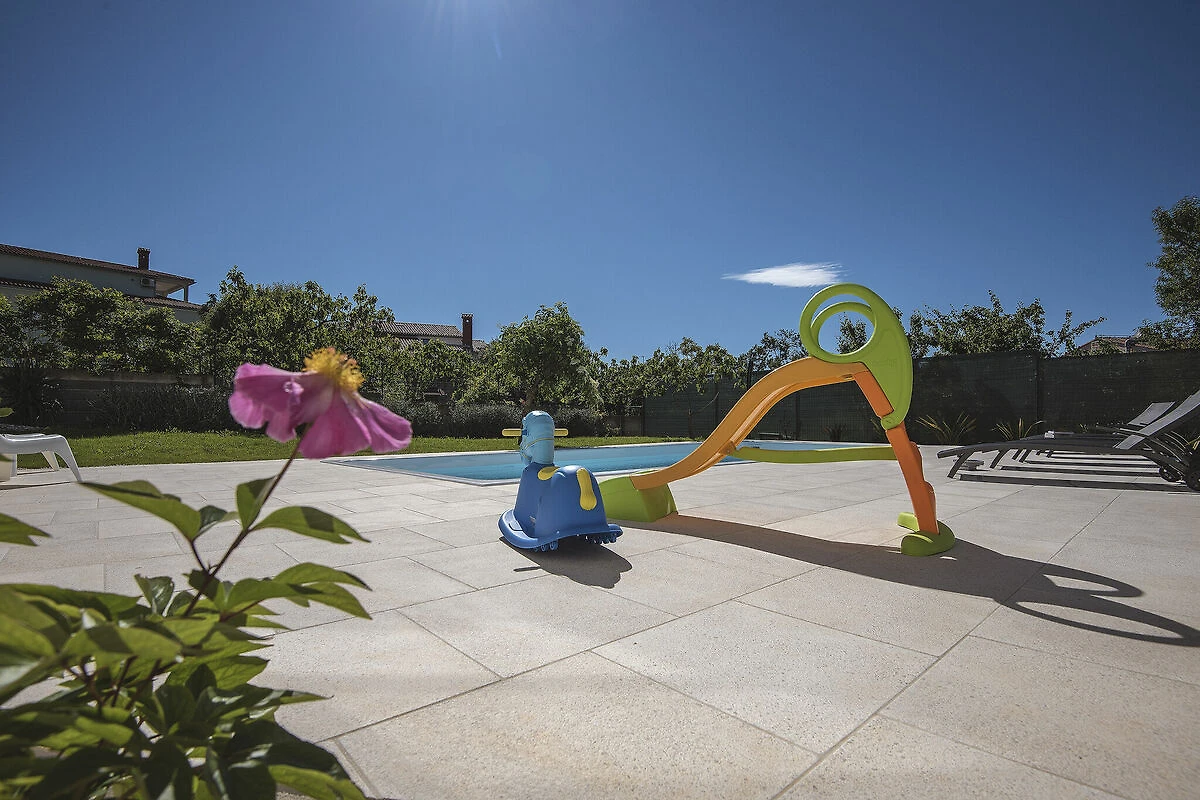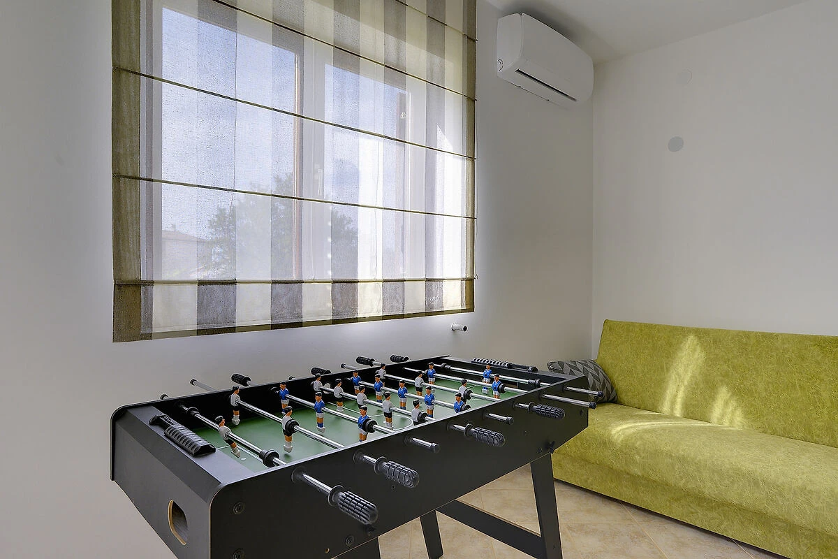 lavatrice, aria condizionata, giardino(in comune col proprietario, recintato), deposito biciclette, mobili da giardino, lettini prendisole, barbecue, parcheggio, tappeto elastico, piscina(privato), cassetta di sabbia, biliardino, biciclette disponibili, asciugacapelli