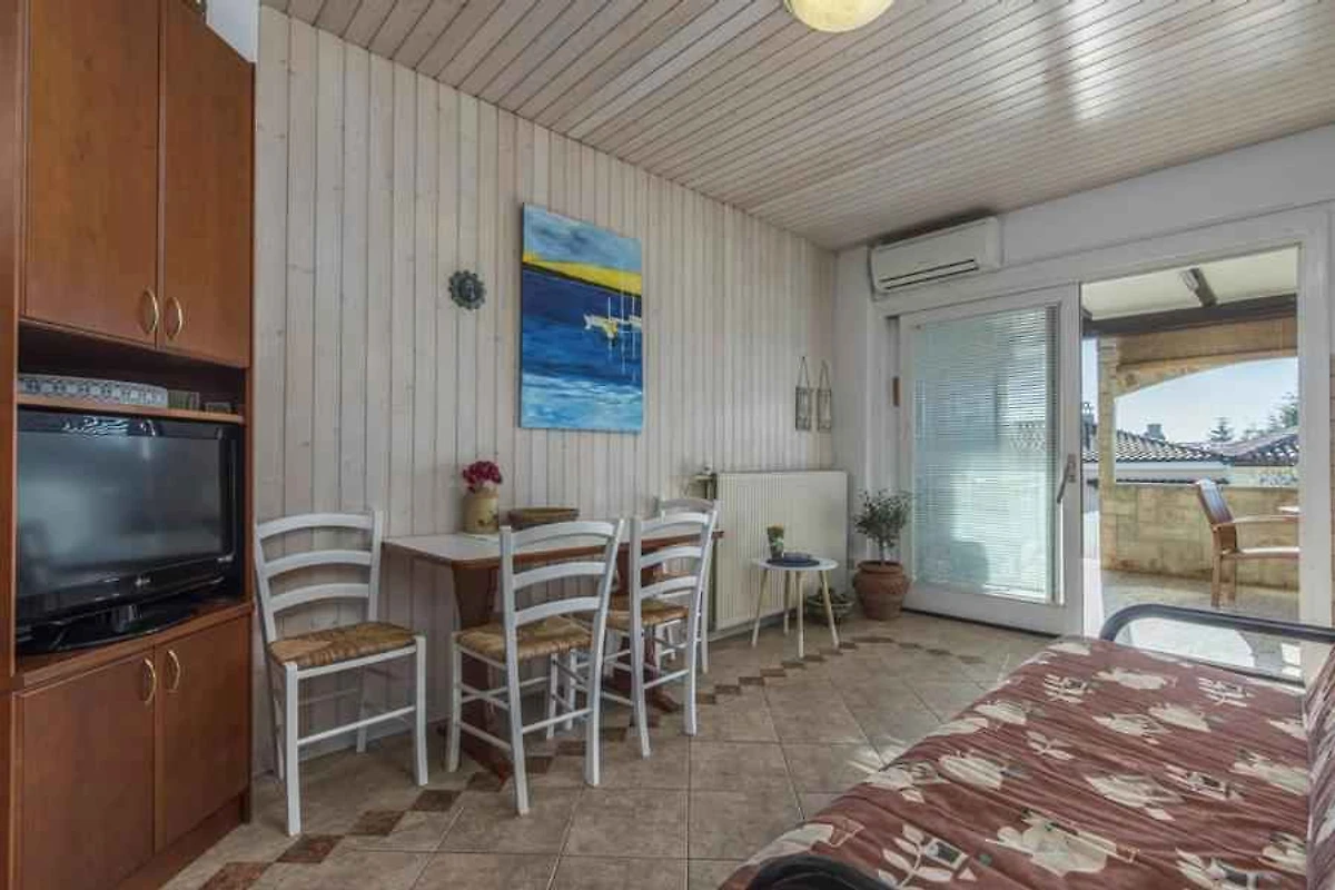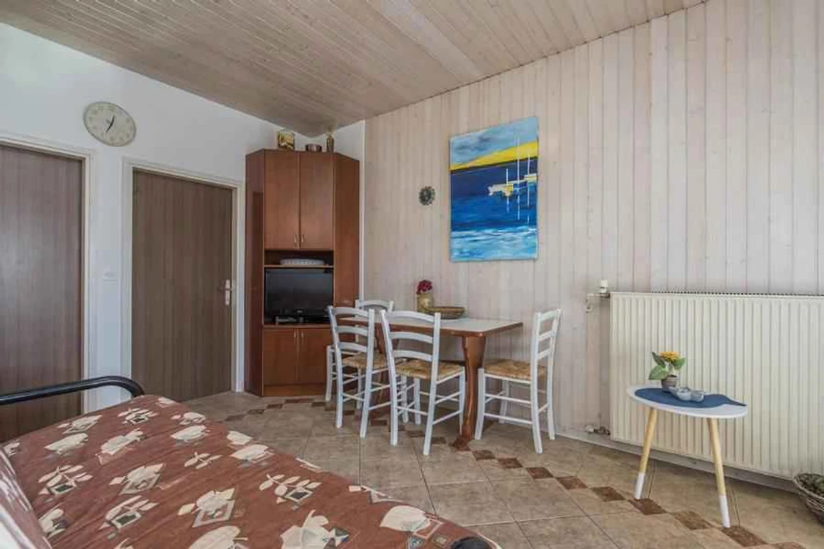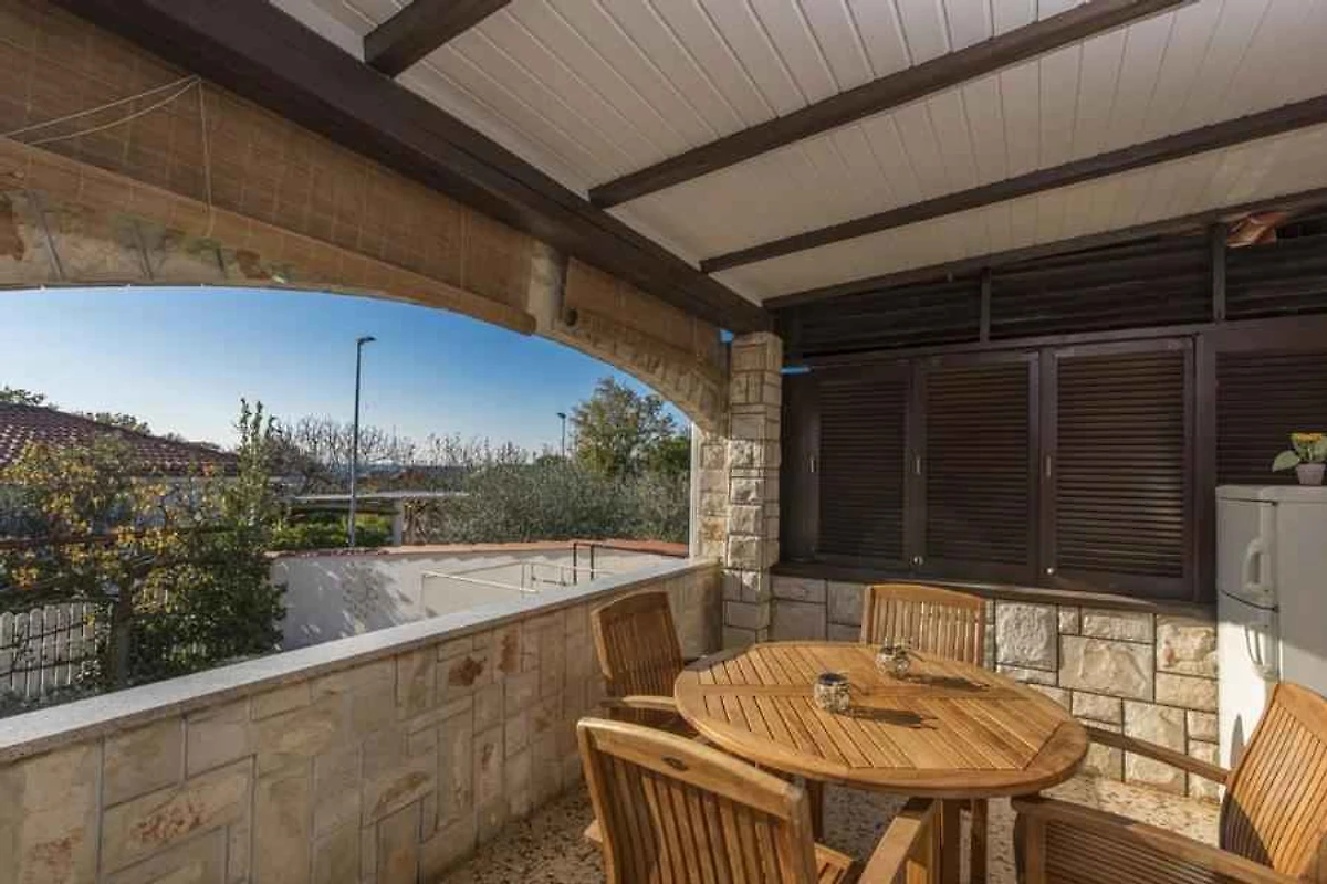 L' appartamento vacanze si trova in una casa unifamiliare ed è arredato funzionale e in stile tradizionale. La proprietà si trova in una zona residenziale, in periferia. Anche a causa della vista dalla struttura sul mare e tranquilla e soleggiata posizione, il domicilio è popolare. Attrezzature in comune: terrazza e mobili da giardino.