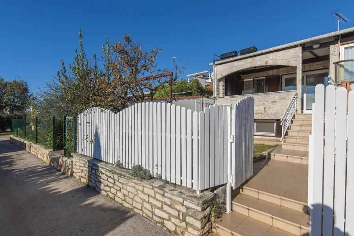 Novigrad. L' appartamento vacanze si trova in una trama del giardino chiuso con prato, fiori e arbusti, delimitata da una recinzione e una siepe. Il proprietario non abita nella casa o nella proprietá. Vista: mare o giardino L'accesso avviene vicino a una strada secondaria (asfaltata). Parcheggio sulla proprietà e strada davanti alla casa.
