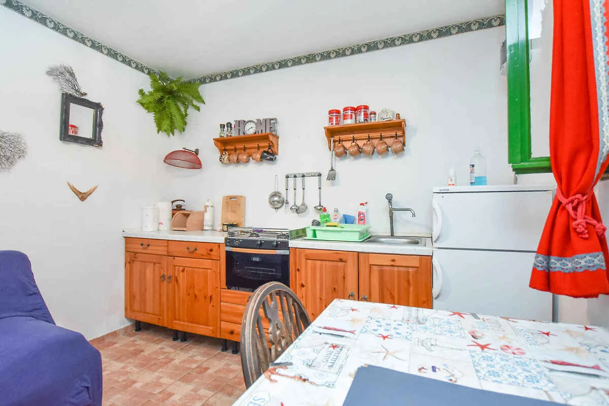 Soggiorno con TV e zona pranzo. 2 camere da letto tutto a con 1 letto matrimoniale. Angolo cucina nel soggiorno con stufa a gas e frigorifero (scomparto del ghiaccio). WC separato con 1 lavandino e WC.