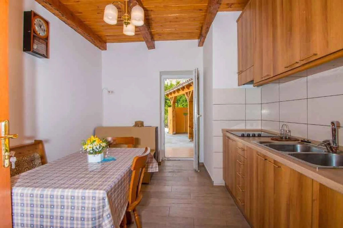 Crikvenica. L' appartamento vacanze si trova in una proprietá chiuso, grande 300 mq con fiori, arbusti e alberi, delimitata da una recinzione. Il proprietario non abita nella casa o nella proprietá. L'accesso avviene direttamente dalla strada principale (asfaltata). Parcheggio sulla proprietà.