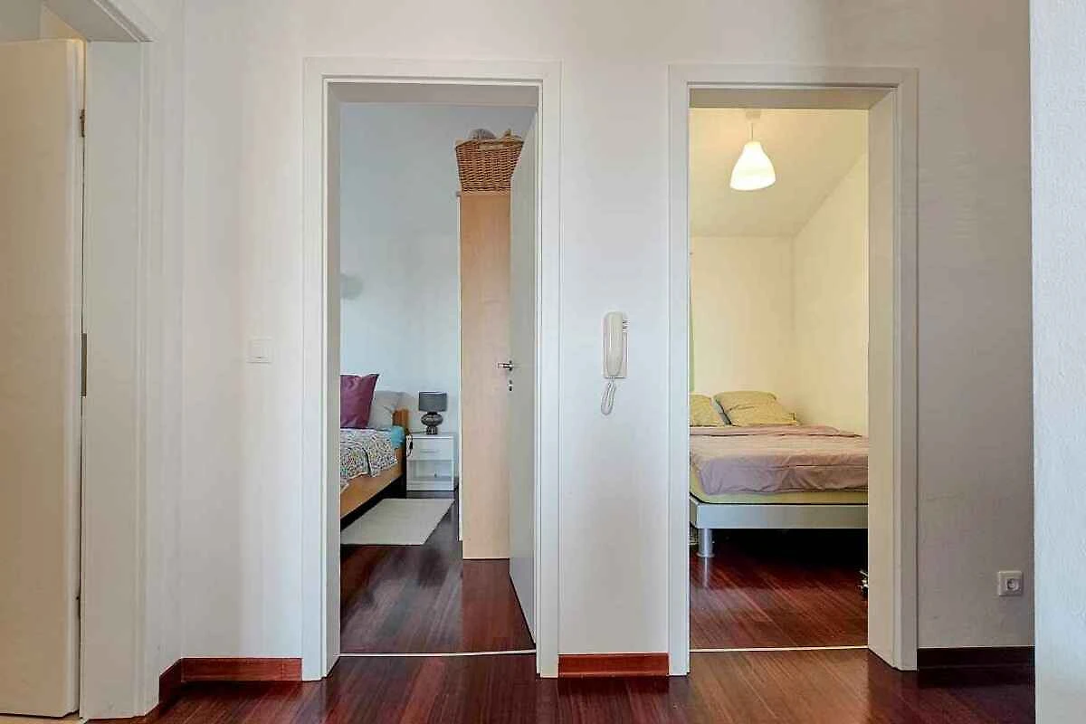 L'ingresso del vostro appartamento conduce sopra una scala interna direttamente nel corridoio. Soggiorno (camera di passaggio) con angolo di seduta, TV, zona pranzo (4 posti) e accesso al balcone. Camera da letto con 1 letto matrimoniale (Queensize). Camera da letto. Cucina (camera di passaggio) con fornello elettrico (4 fornelli), forno, cappa aspirante, lavastoviglie, frigorifero, microonde, caffettiera e bollitore elettrico. Bagno con doccia, 1 lavandino, WC e finestra.