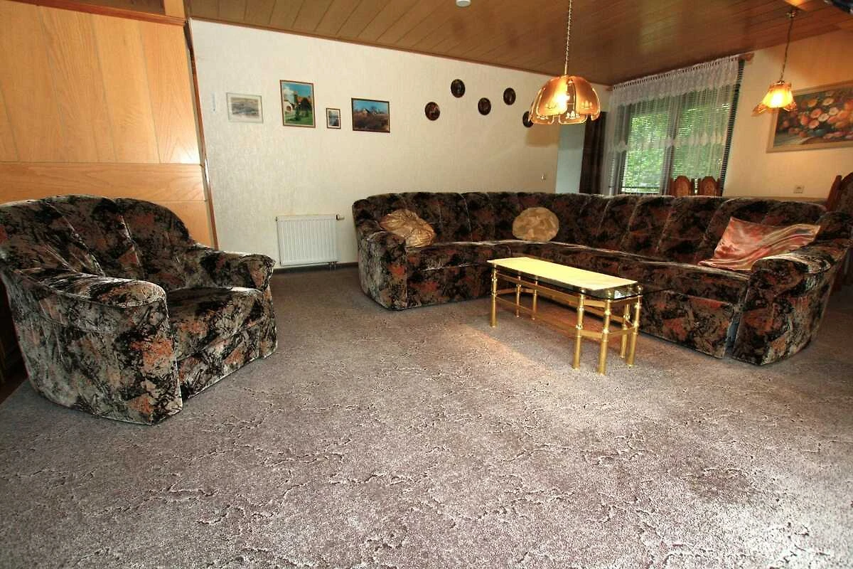 L'ampio soggiorno con un grande divano ad angolo e poltrona, nonché moquette in tessuto, la camera da letto e la cucina completamente attrezzata, nonché il bagno con doccia e WC completano il concetto di questo appartamento per le vacanze.