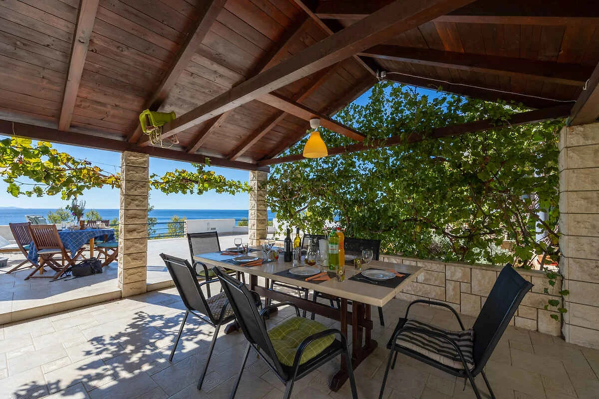 La casa vacanze è una casa a schiera e arredata pratica. La proprietà si trova in periferia. Anche a causa della vista dalla struttura sul mare e tranquilla e soleggiata posizione, il domicilio è popolare. Attrezzature in comune: ombrellone, lettino da sole, doccia da giardino, possibilità di grigliare, terrazza, padiglione e mobili da giardino.