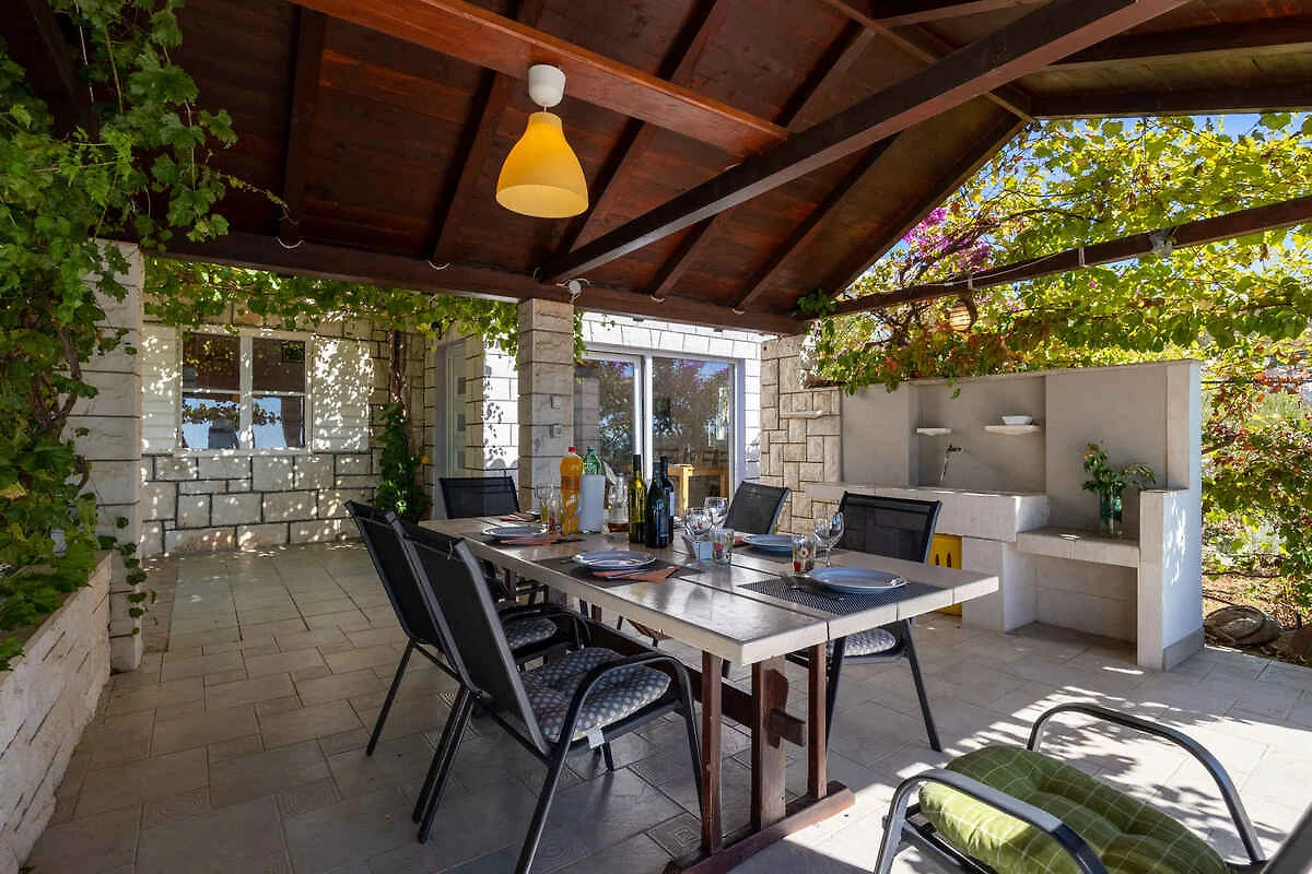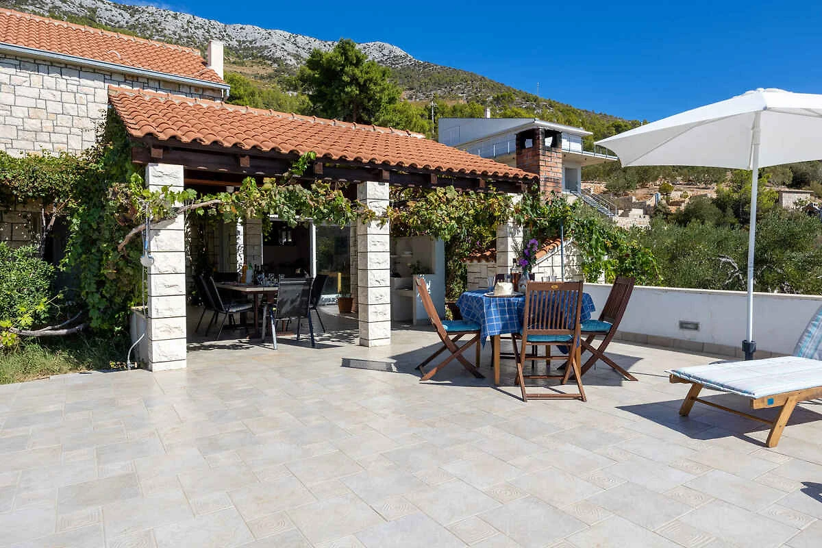 Ivan Dolac. La casa vacanza si trova in una trama del giardino chiuso, grande 440 mq con fiori e alberi, delimitata da una recinzione. Il padrone di casa vive stabilmente nella casa, ma usa un ingresso separato. L'accesso avviene vicino a una strada secondaria (pietrisco o ghiaia). Parcheggio sulla strada davanti alla casa.