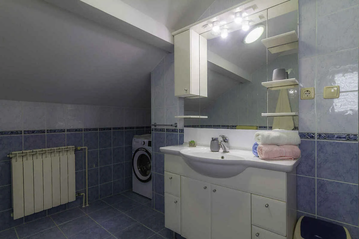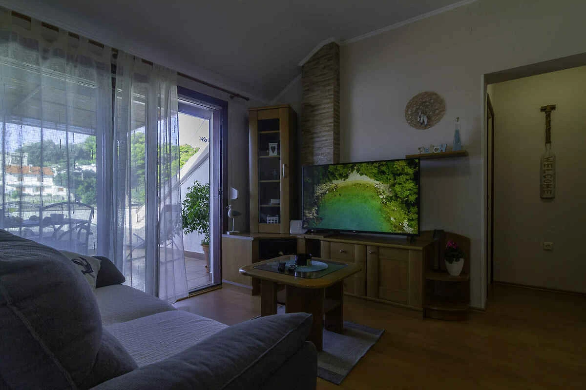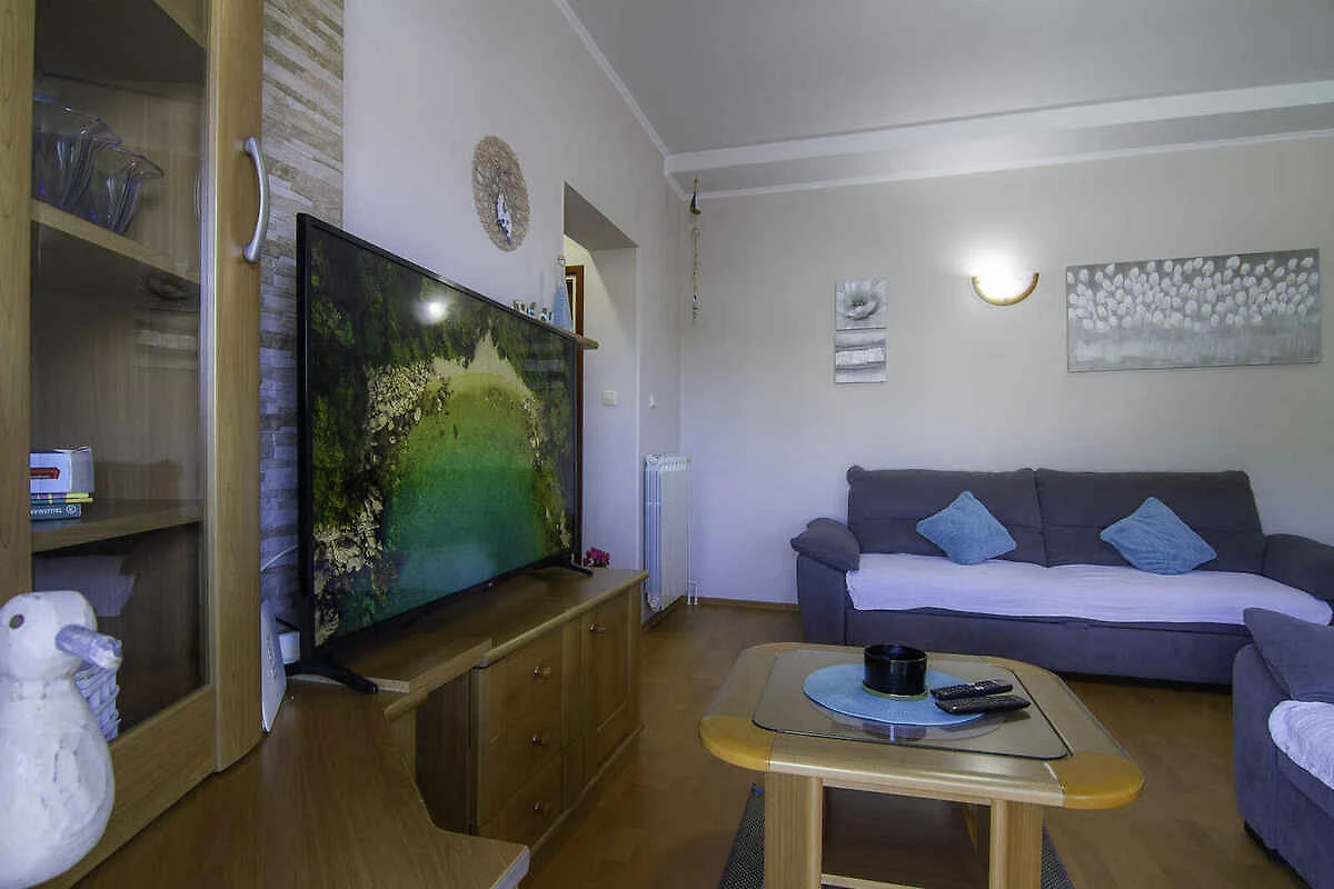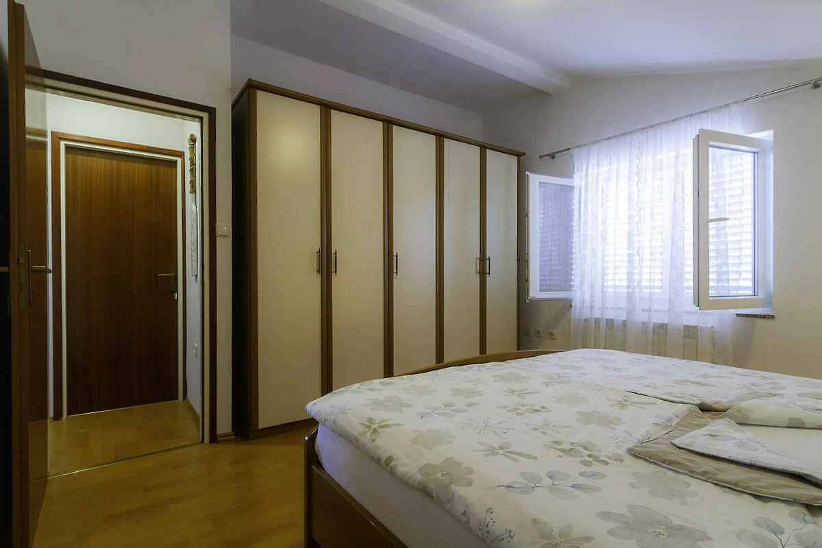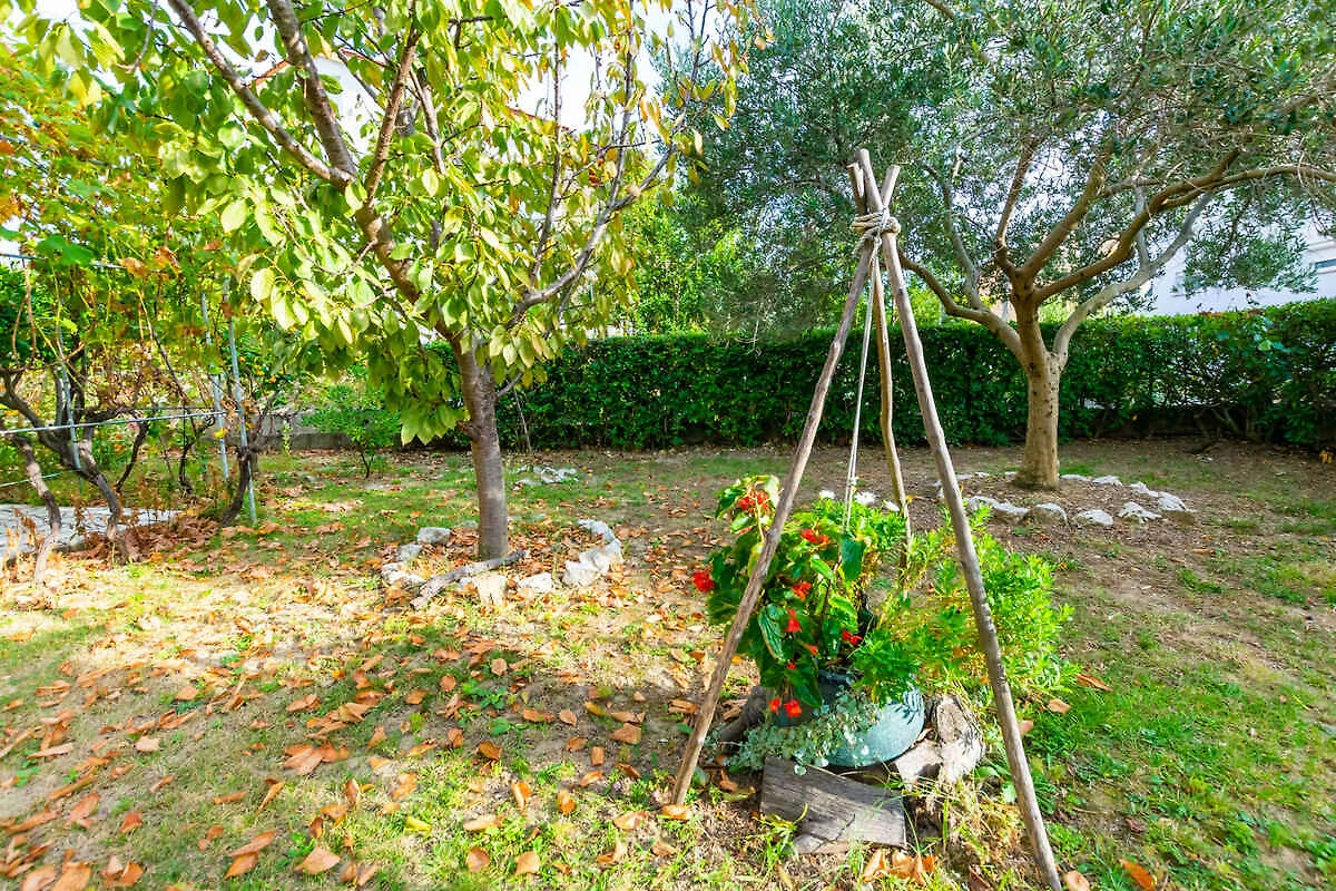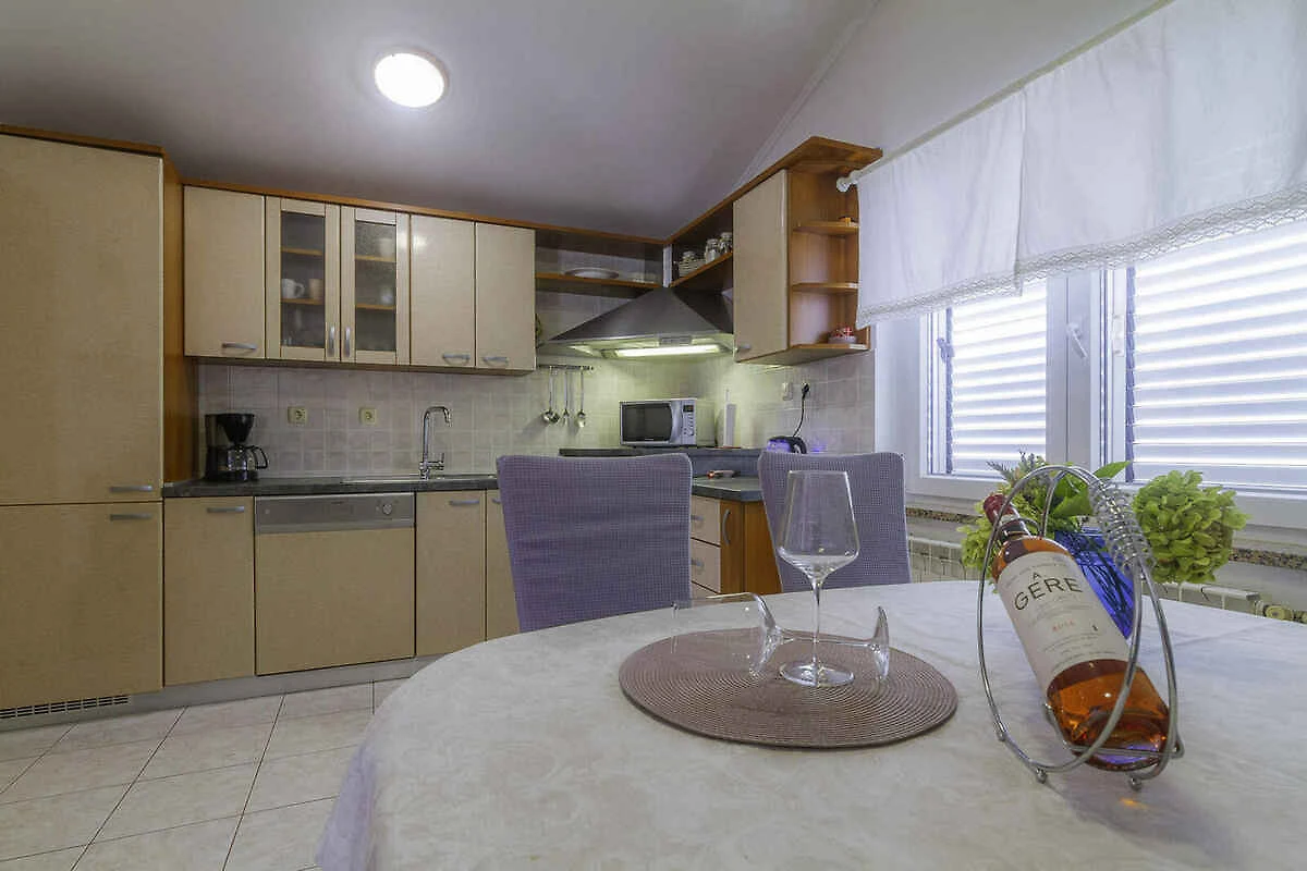 Palit. L' appartamento vacanze si trova in una trama del giardino chiuso con fiori, arbusti e alberi, delimitata da una siepe. Il padrone di casa vive stabilmente nella casa, ma usa un ingresso separato. L'accesso avviene vicino a una strada secondaria (asfaltata). Parcheggio sulla proprietà.