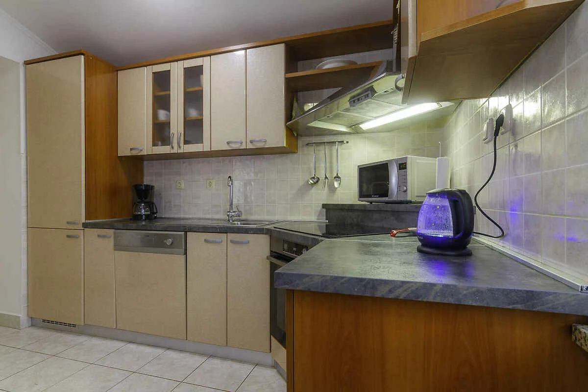 Soggiorno. Camera da letto (16 mq) con 1 letto matrimoniale. Angolo cucina nel soggiorno con stufa a gas, forno, lavastoviglie, frigorifero, microonde, caffettiera, tostapane e bollitore elettrico. Bagno con vasca da bagno e WC.