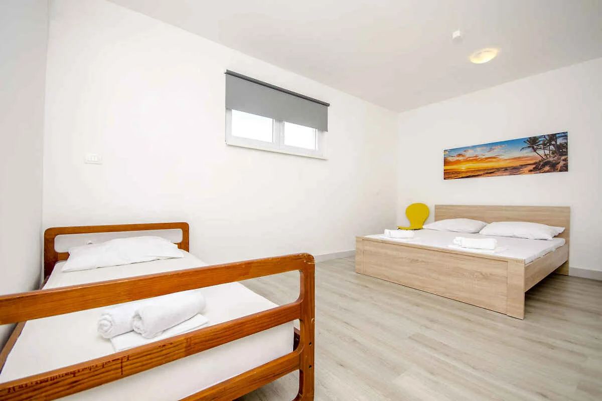 L' appartamento vacanze si trova in un appartamento casa ed è arredato moderno e funzionale. La proprietà si trova in una zona residenziale, in periferia. Anche a causa della vista dalla struttura sul mare e soleggiata posizione, il domicilio è popolare. Attrezzature: lettino da sole, possibilità di grigliare, terrazza e mobili da giardino.