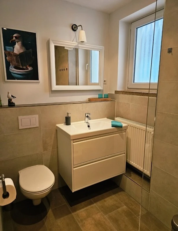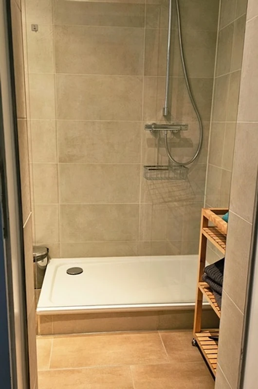 Il bagno è moderno e funzionale e dispone di un asciugacapelli. L'appartamento è adatto ai non fumatori e agli inquilini a lungo termine.