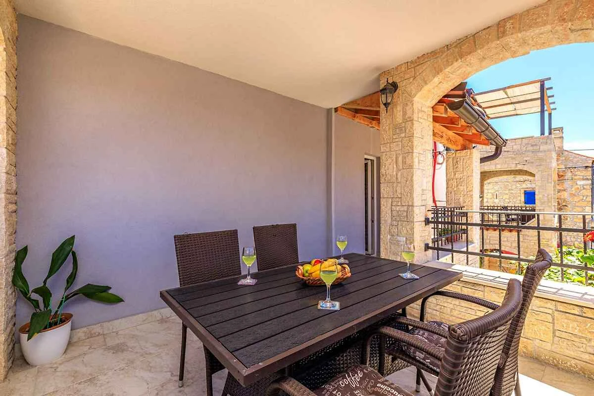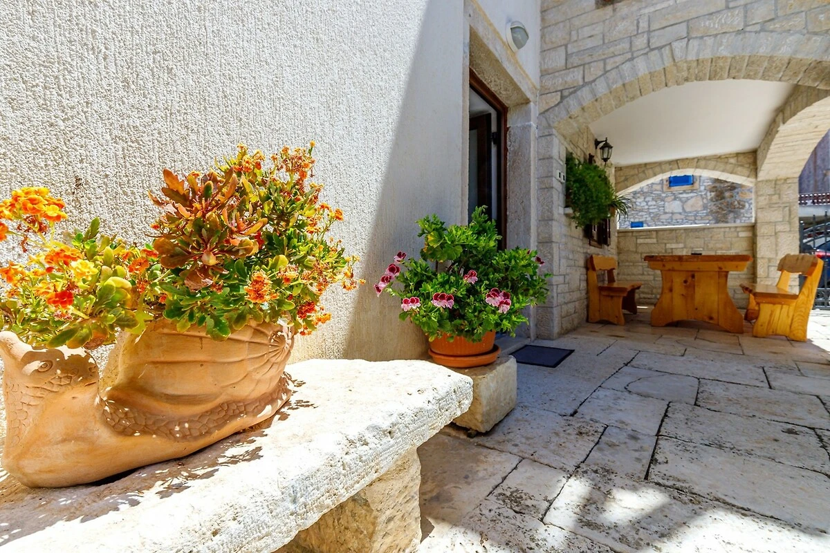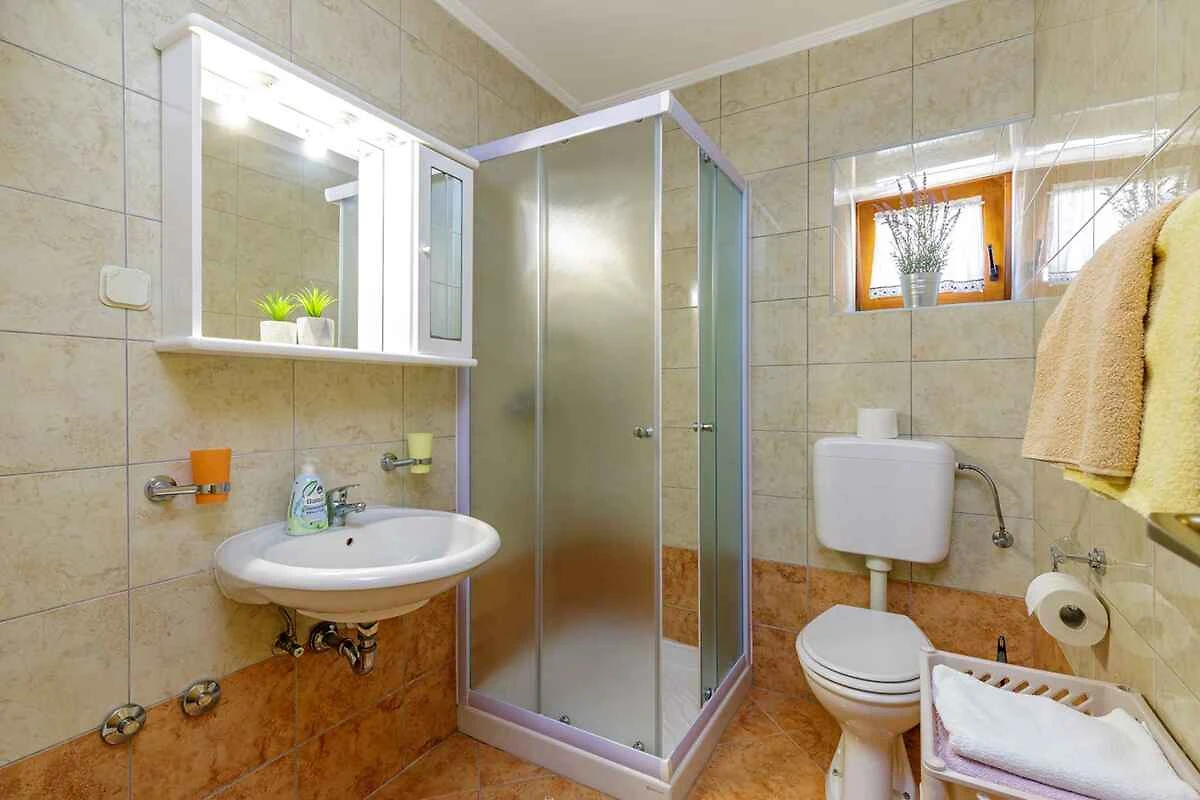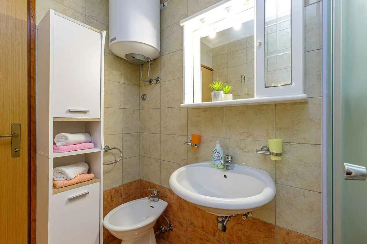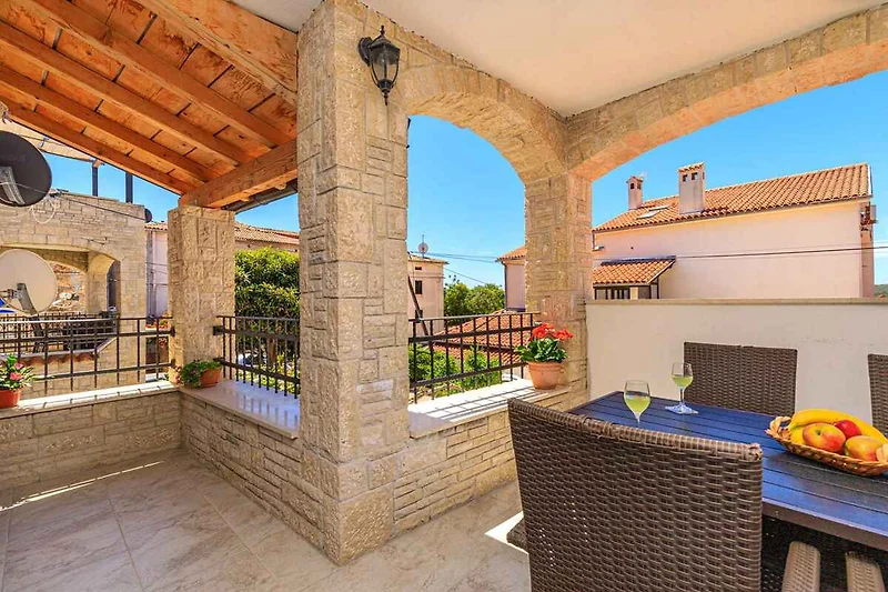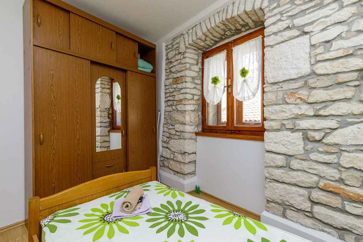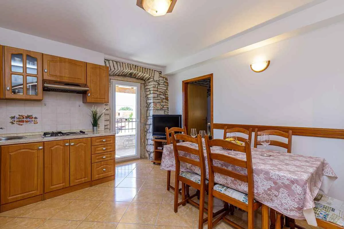 Medulin. L' appartamento vacanze si trova in una trama del giardino chiuso con fiori e alberi. Il padrone di casa vive nella casa, ma usa un ingresso separato. L'accesso avviene vicino a una strada secondaria (asfaltata). Parcheggio sulla proprietà.