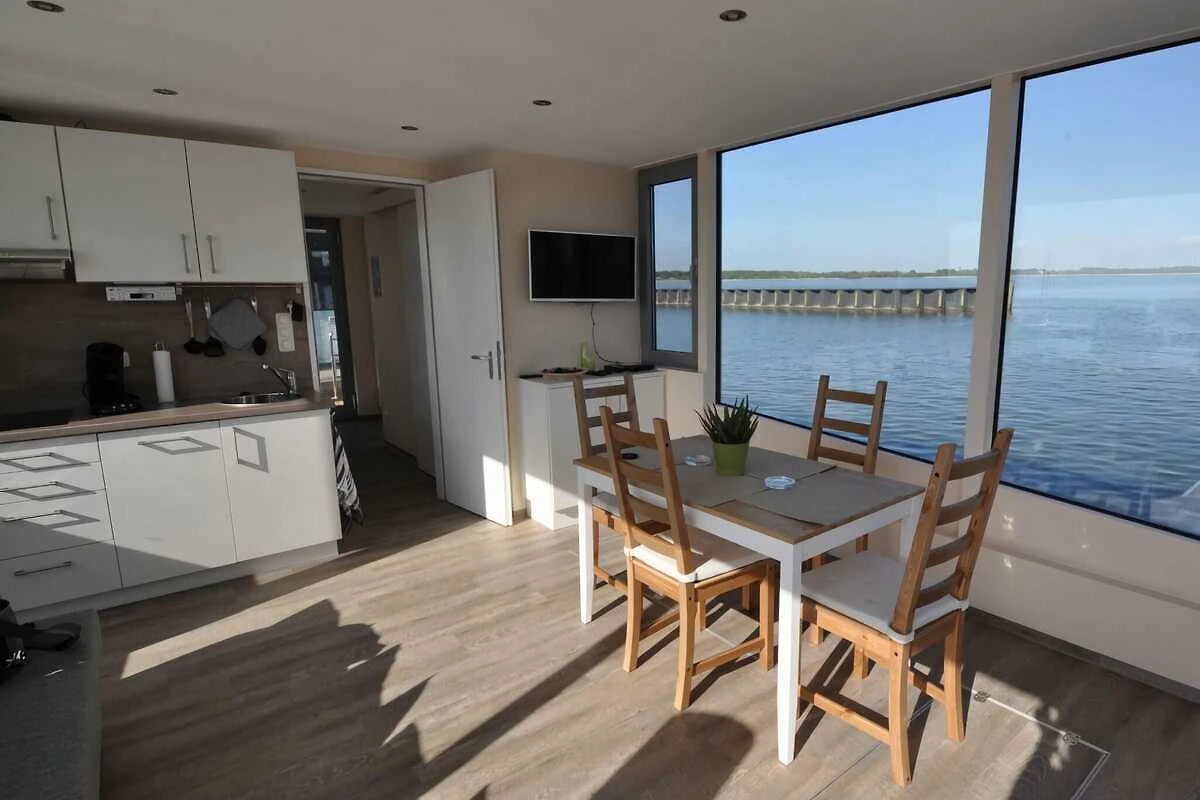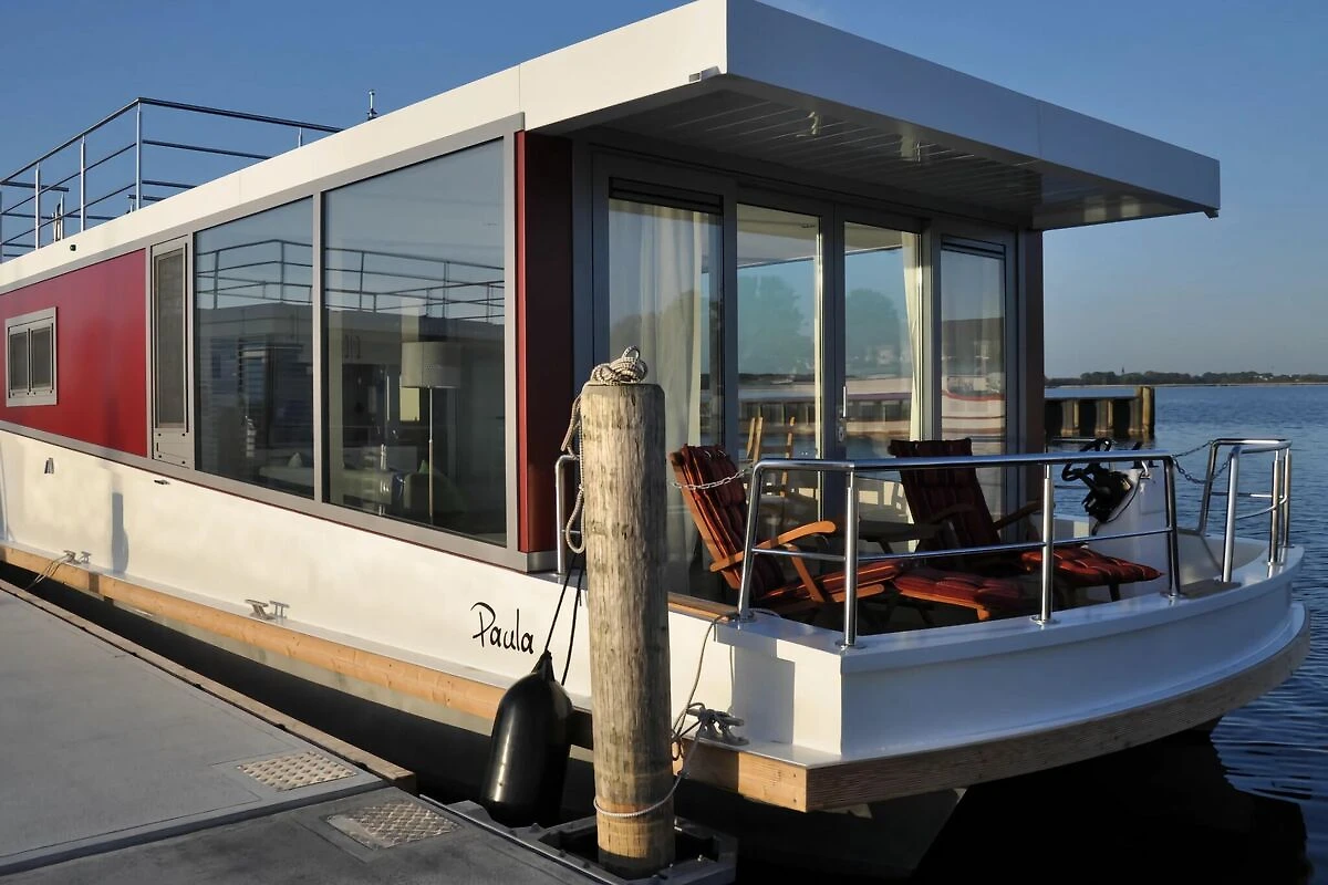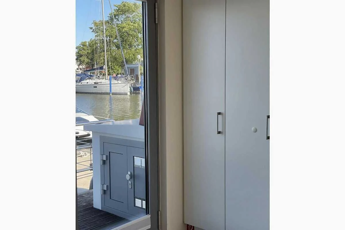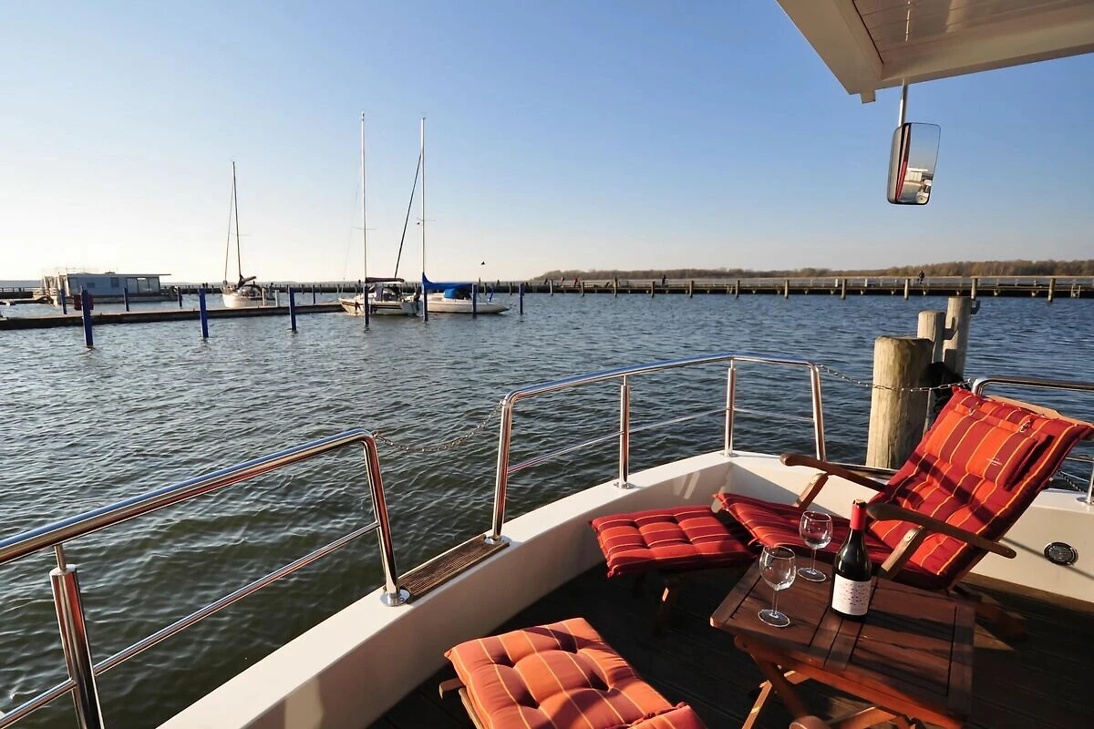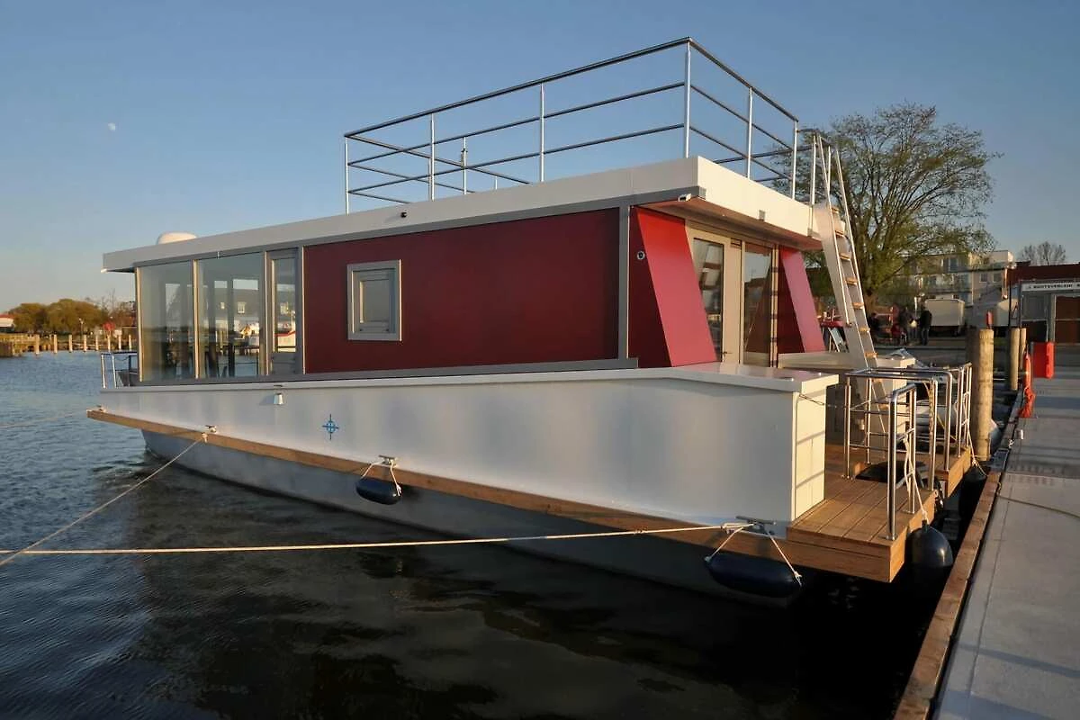 Vivi una vacanza speciale sull'acqua tra tramonti spettacolari e l'atmosfera del porto turistico sulla nostra casa galleggiante nel porto di Ribnitz.