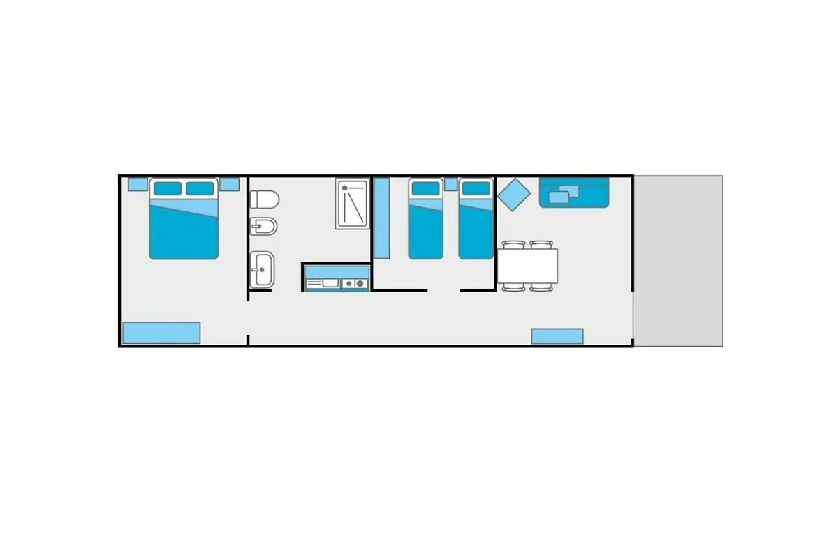 Bellissimo appartamento spazioso con 2 camere da letto. Abbiamo trovato sia l'appartamento che il campeggio puliti. Anche la piscina. La spiaggia non è lontana. Molti bar e negozi nelle vicinanze.