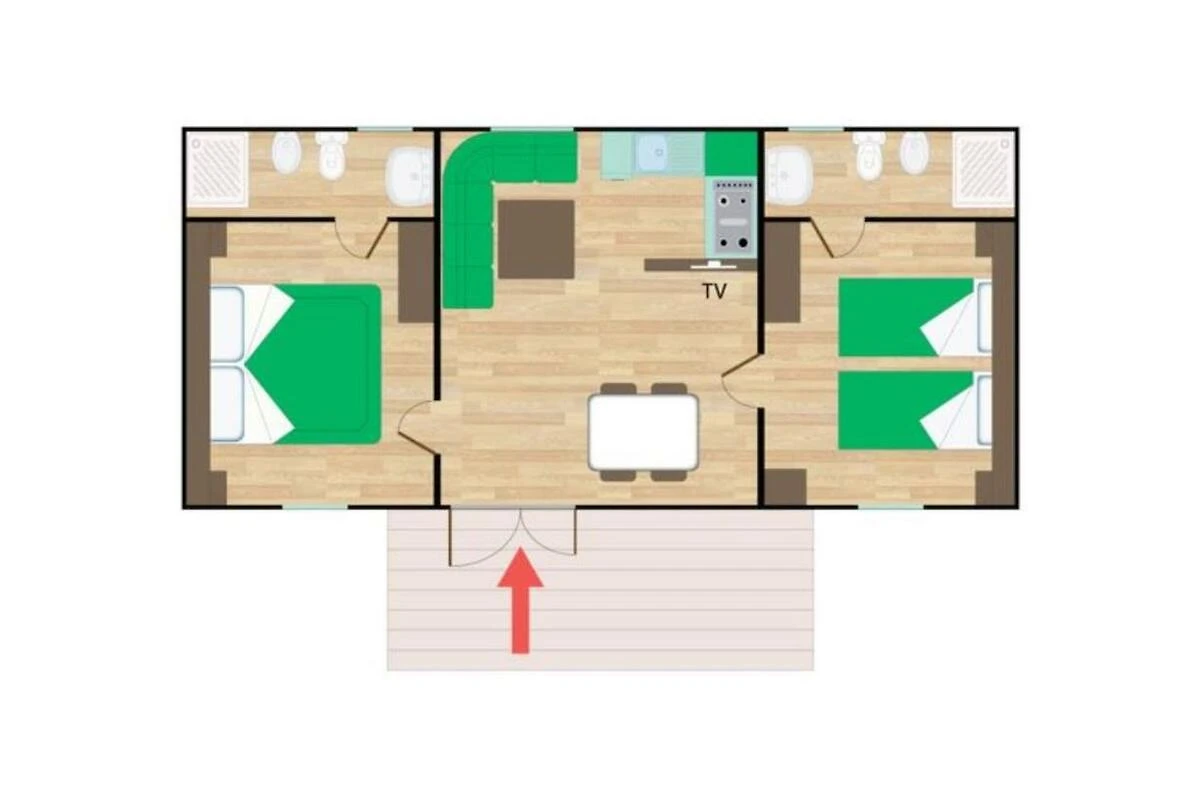 Bellissimo mobilhome arredato e bella terrazza per rilassarsi.