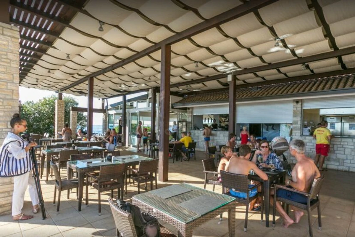 L'impianto è gestito con molta attenzione ai dettagli. La spiaggia è stata giornalmente ripristinata, le piante irrigate e curate e, nonostante ci fossero molti proprietari di cani, l'impianto era pulitissimo. C'era anche una spiaggia separata per cani! Ottimo anche che le attività sportive come basket, ping pong, ecc. fossero incluse nel prezzo. Tuttavia, il prezzo della colazione era esagerato.