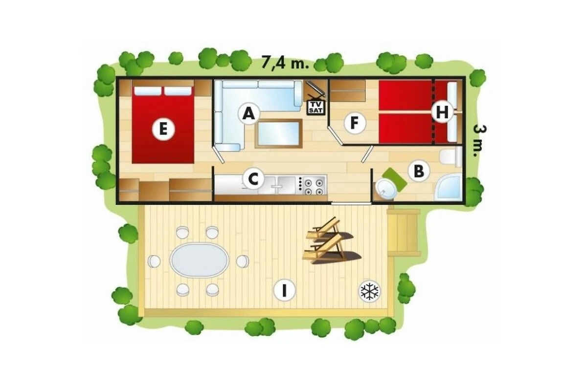 Bellissima casa mobile sulla spiaggia per tutta la famiglia. Tutto pulito e ottimo rapporto qualità prezzo. Siamo stati l'estate scorsa in quattro con il nostro cane Balu per due settimane. Persino lui aveva la sua piscina :) I nostri figli (10 e 13 anni) hanno subito fatto amicizia nel campeggio e si sono divertiti molto.