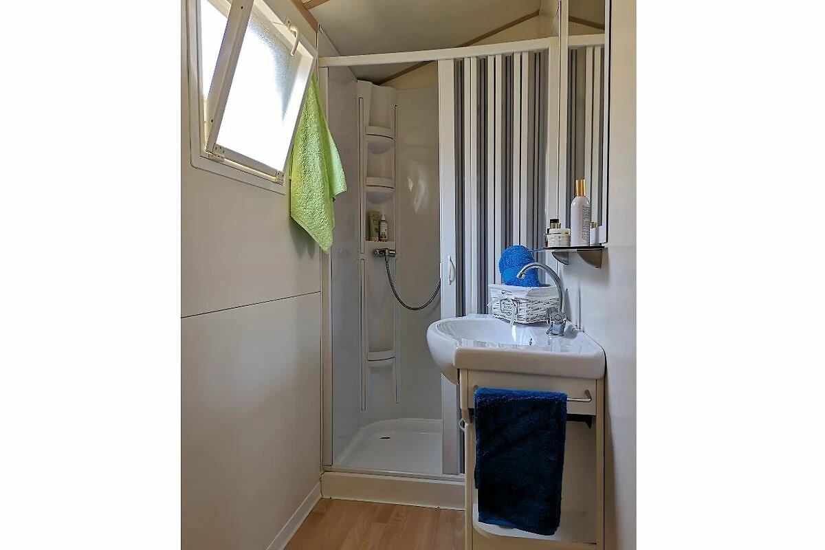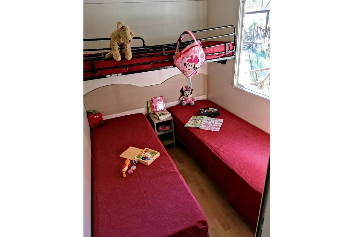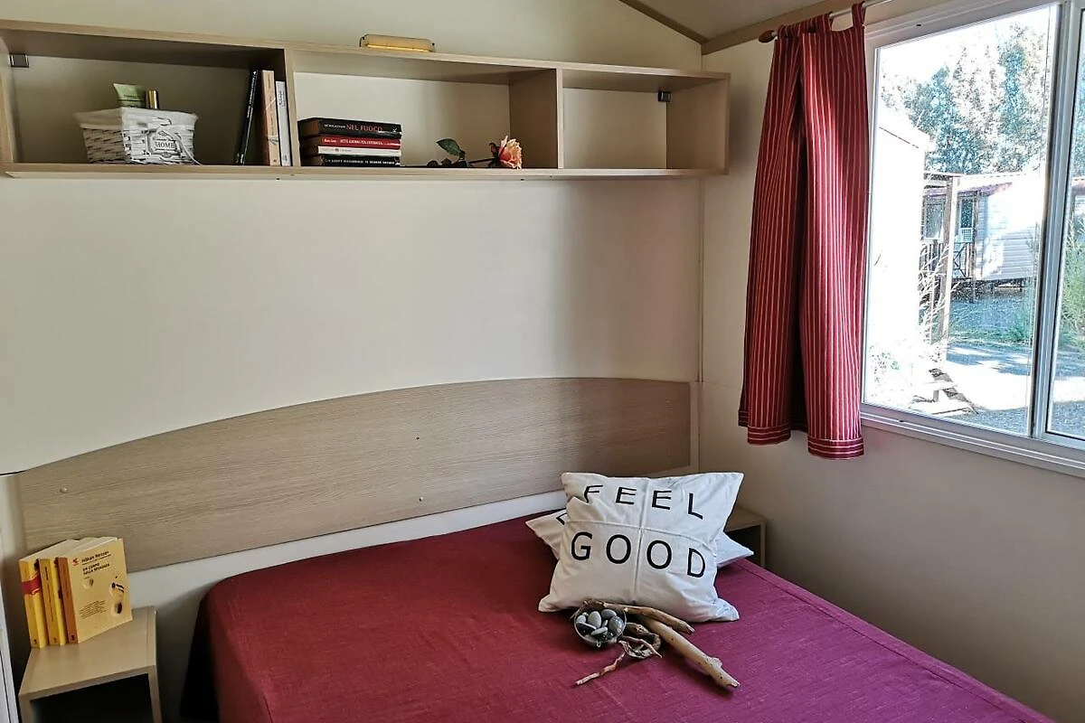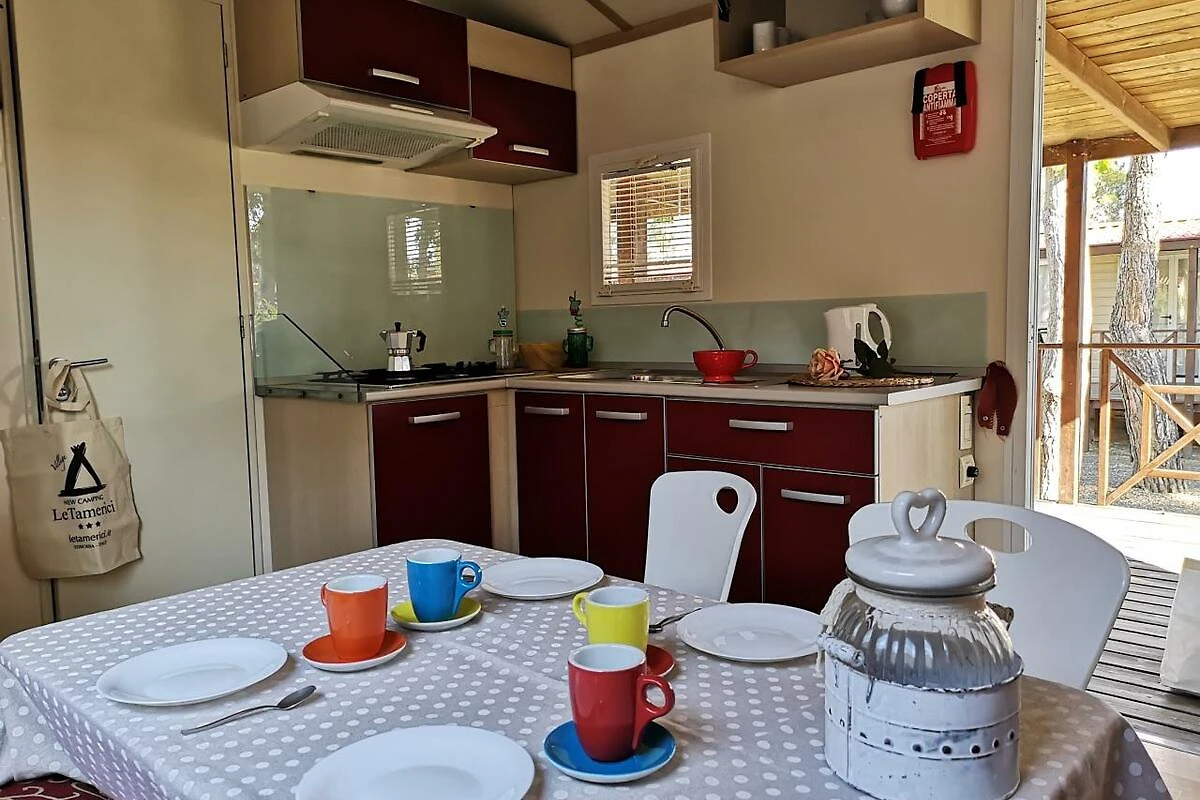 Il campeggio è molto ben tenuto e ben curato. Il personale è molto cordiale. I mobilhome sono luminosi e arredati in modo moderno. C'è una piscina, un bar a bordo piscina, un supermercato, un bazar e una pizzeria. È possibile affittare biciclette, il che è molto consigliato, perché ci sono buone piste ciclabili e si può esplorare bene tutto il luogo in bicicletta. Il mare è raggiungibile attraverso un boschetto di pini. L'acqua è limpida e molto pulita.