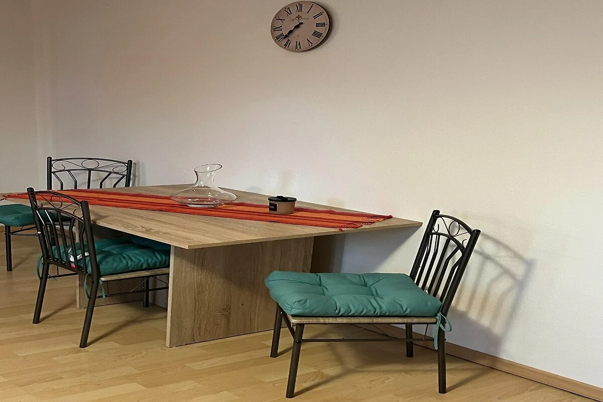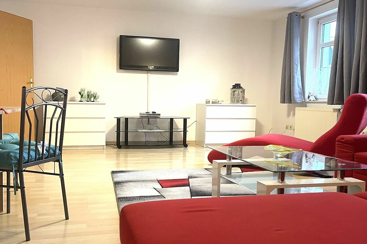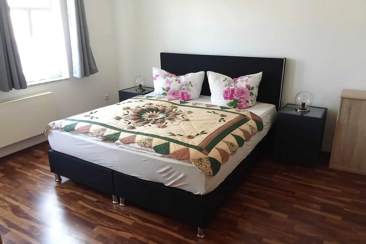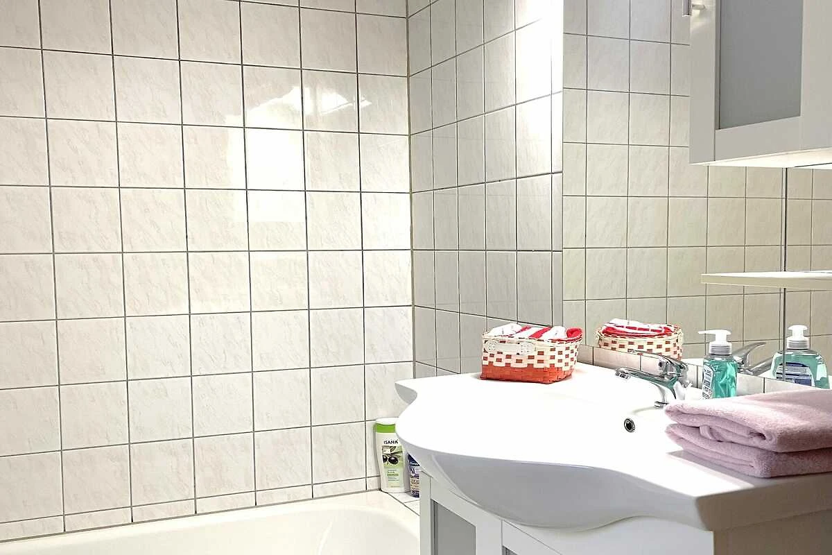 L'appartamento dispone di un luminoso soggiorno con divano letto matrimoniale, TV e area salotto. La cucina è attrezzata con macchina da caffè, forno, frigorifero e bollitore, ideale per preparare pasti in casa. Un'accogliente camera da letto con letto matrimoniale a molle e un bagno con vasca e doccia garantiscono il massimo comfort. All'esterno, godetevi la terrazza privata con mobili da giardino, barbecue e parcheggio in loco.