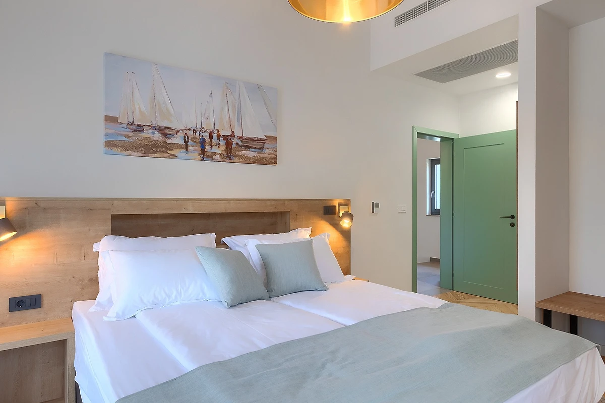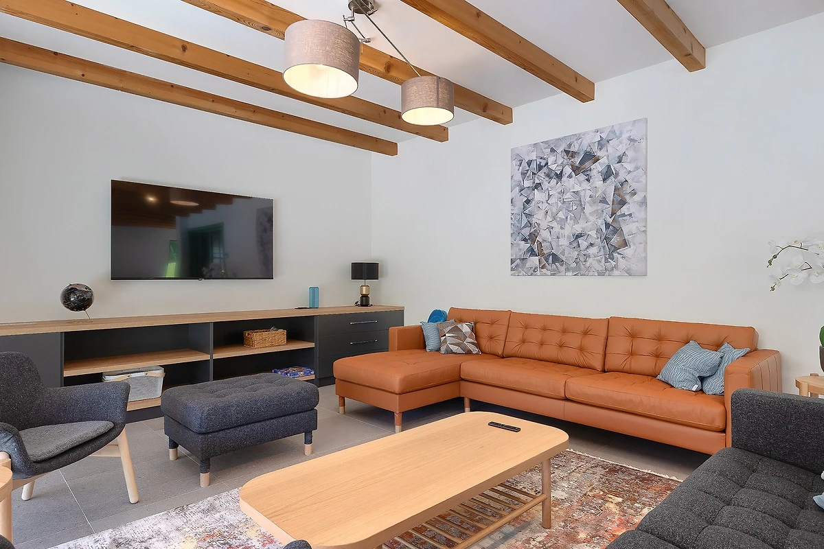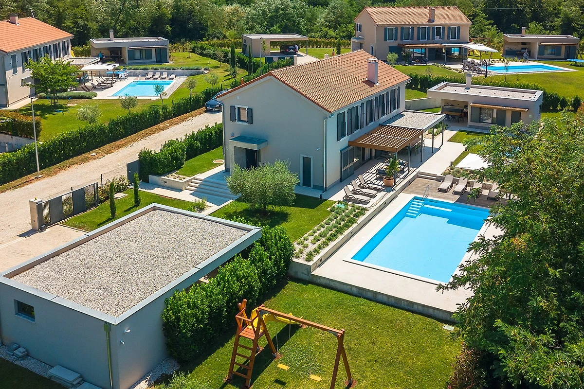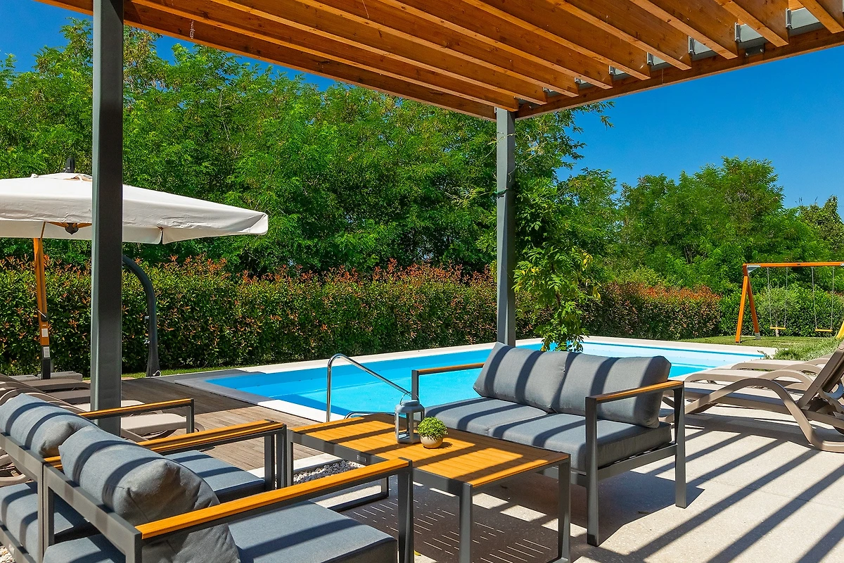 Oltre agli interni raffinati e arredati con gusto, Villa Fritula vi stupirà con il suo giardino di 1091 m² con 4 aree lounge. Accanto alla piscina di 50 m² ci sono 7 lettini, mentre sulla spaziosa terrazza esterna si trovano un tavolo da pranzo con 10 sedie, un'altalena e un comodo divano con poltrone. Accanto alla villa si trova un edificio aggiuntivo con una terrazza dotata di cucina estiva con grill e un tavolo con 6 sedie. Non c'è davvero fine al piacere in questa villa, e con così tante aree relax, c'è spazio per grandi gruppi di amici o famiglie. I bambini possono giocare nel parco giochi all'aperto e ci sono anche un set da ping-pong, attrezzature per il badminton e giochi da tavolo. L'ampio cortile è ideale per chi desidera portare in vacanza il suo animale domestico.