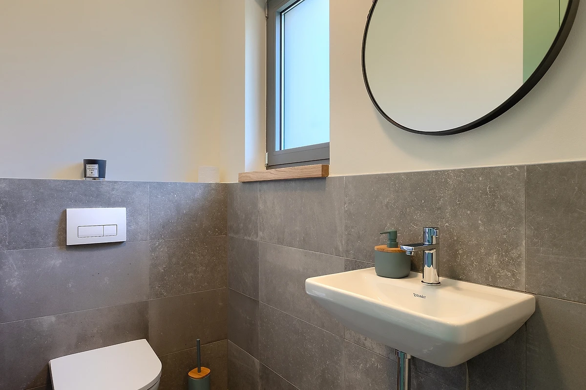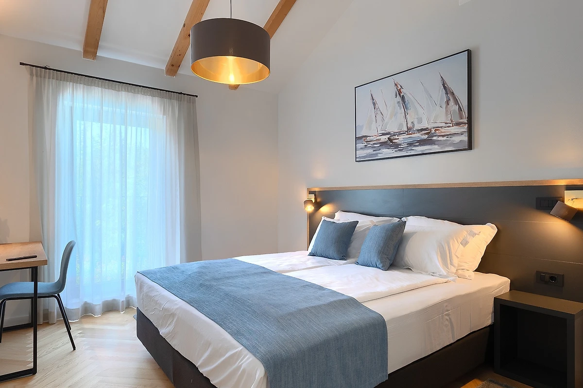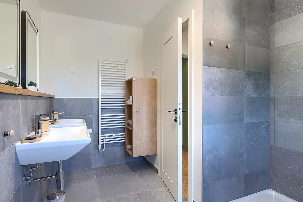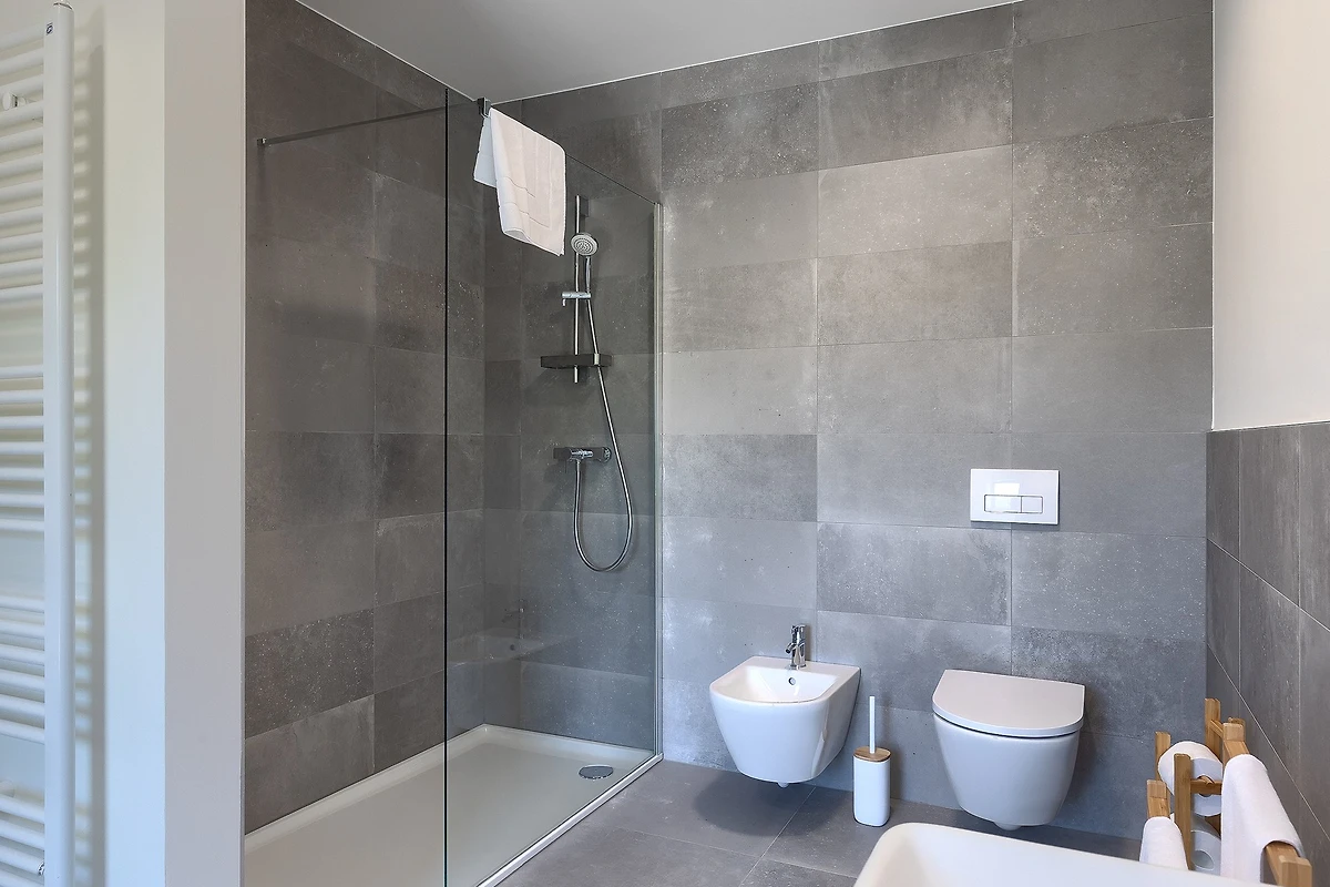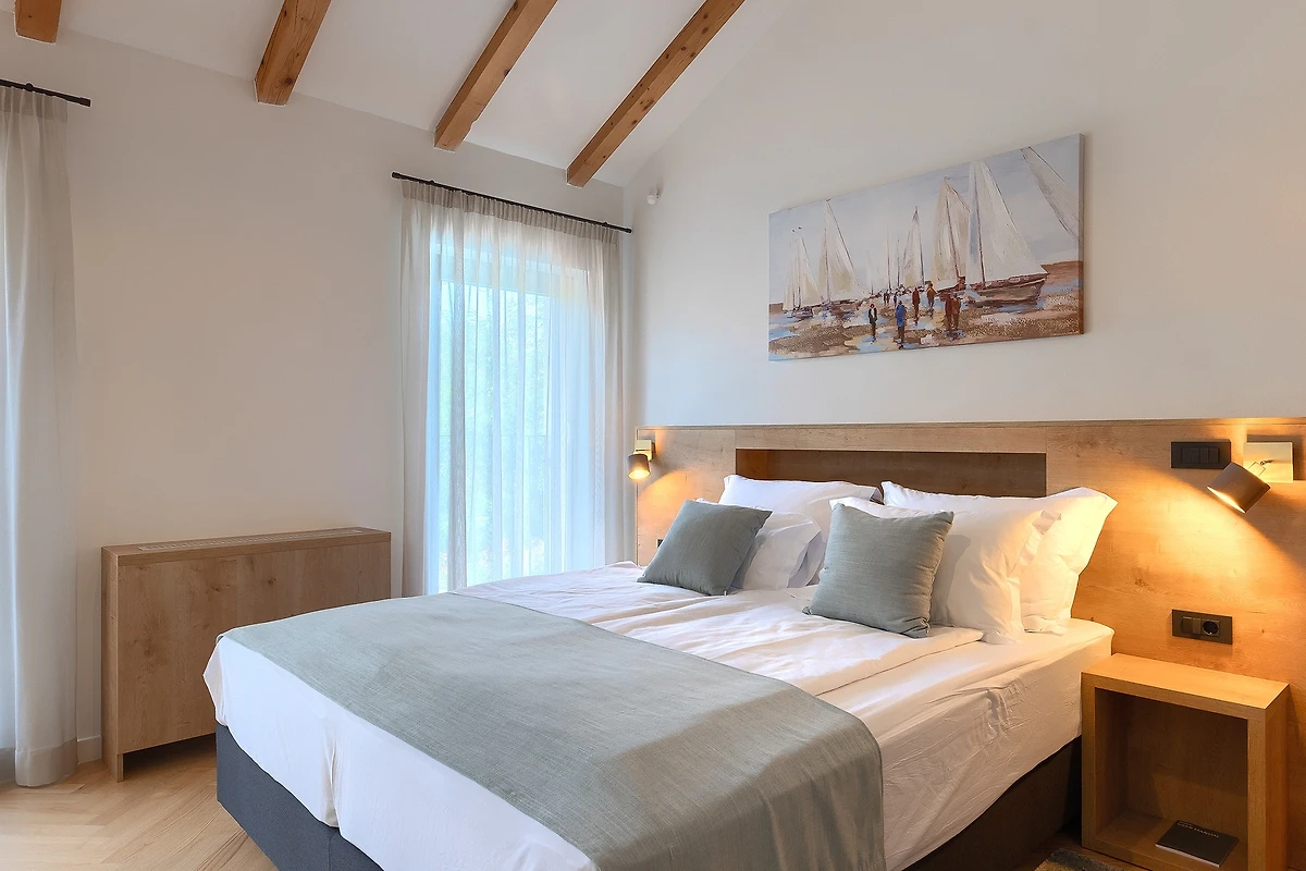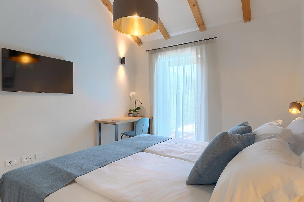 L'ambiente tranquillo si estende anche al primo piano, dove si trovano 3 camere da letto. Tutte le camere sono dotate di bagno privato e di letti matrimoniali. Tutti i bagni sono dotati di articoli da toilette e c'è anche una lavatrice. Le camere hanno balconi alla francese che aggiungono un tocco di fascino romantico. La 4° camera da letto con bagno si trova in un edificio separato nel cortile.