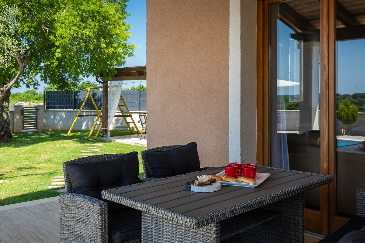 La villa può accogliere 8 ospiti ed è la scelta ideale se desiderate trascorrere le vostre vacanze rilassandovi vicino a piscina all'aperto e vista panoramica del paesaggio.