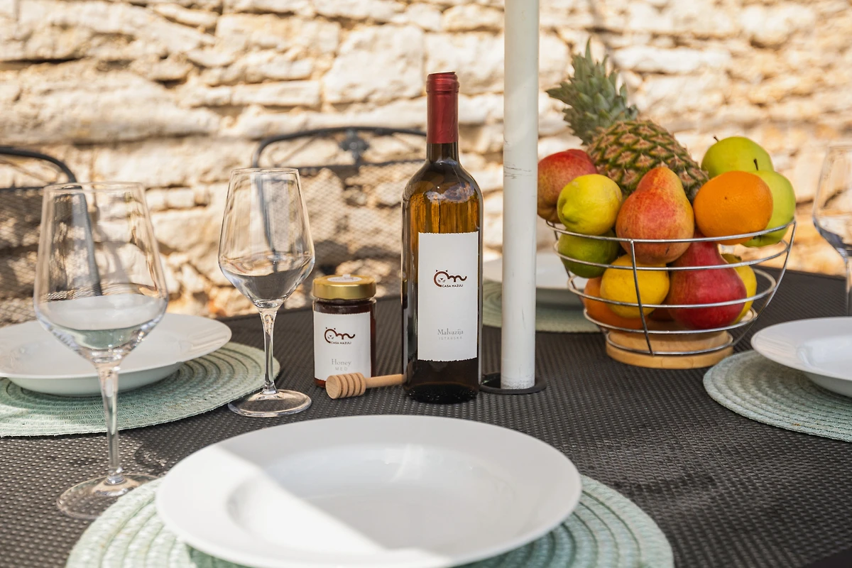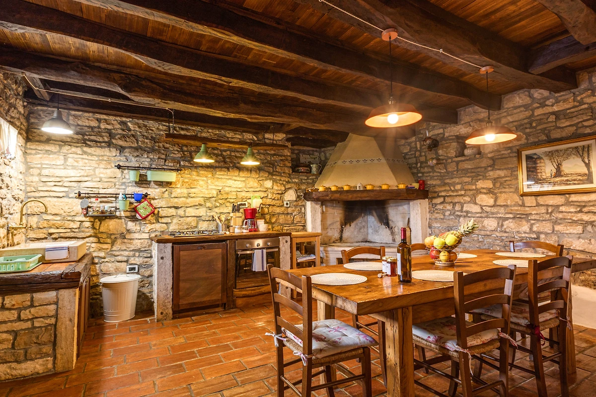 Al piano terra della villa si trova una spaziosa taverna decorata in stile autentico con molti dettagli tradizionali. Qui troverete una cucina, un camino per preparare pasti deliziosi e un tavolo da pranzo per 6 persone. C'è anche un'area separata con una selezione di vini locali e un ulteriore bagno. Ciò che distingue Villa Casa Mazuli è sicuramente il suo interno tradizionale rivestito in pietra istriana, che vi garantirà molta freschezza durante le calde giornate estive.
