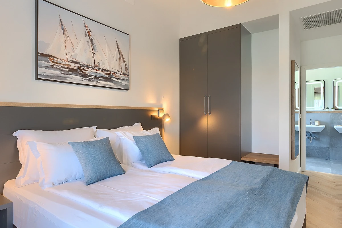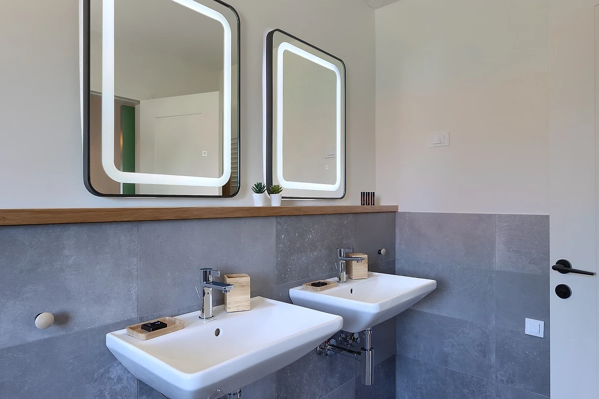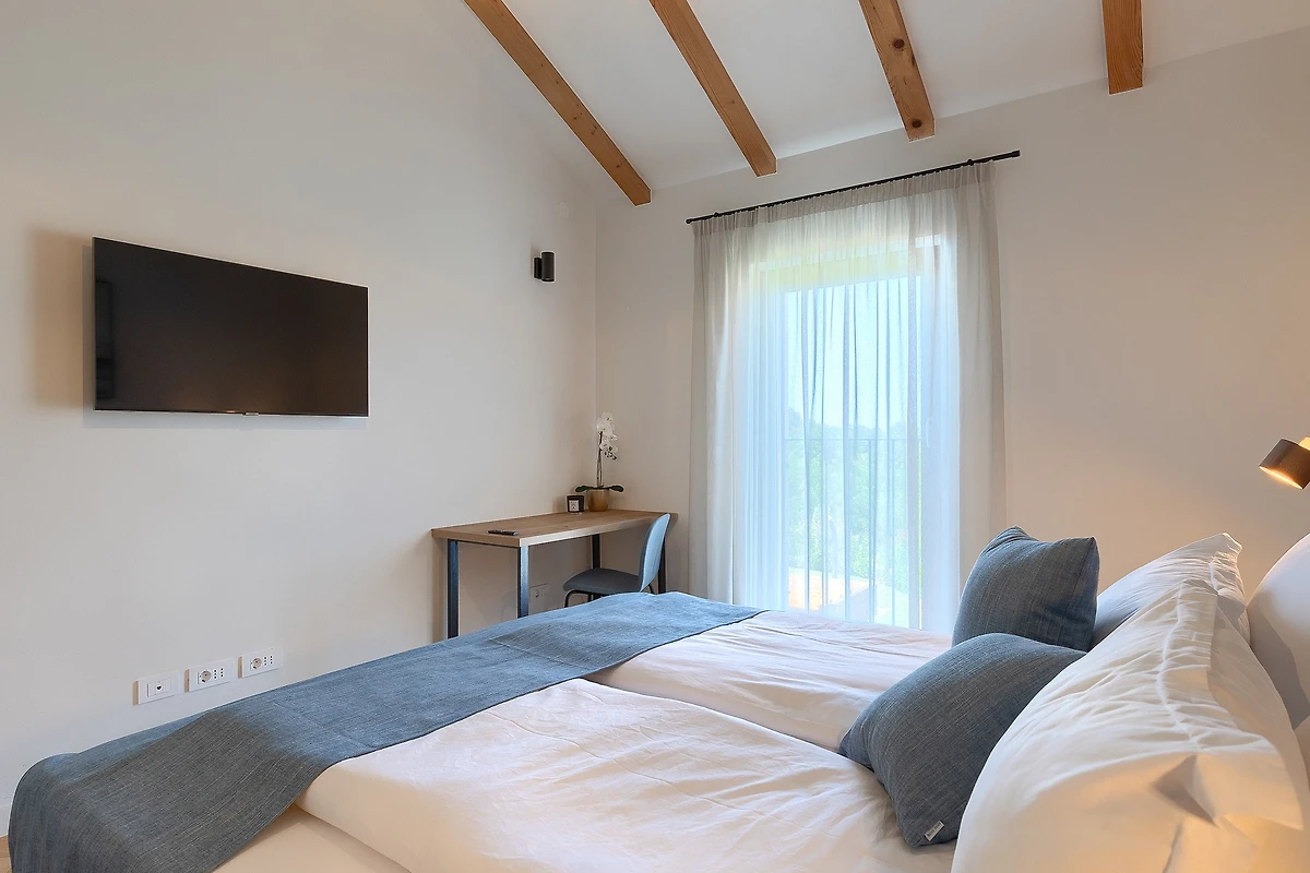 L'ambiente tranquillo si estende anche al primo piano, dove si trovano 3 camere da letto. Tutte le camere sono dotate di bagno privato e di letti matrimoniali. Tutti i bagni sono dotati di articoli da toilette e c'è anche una lavatrice. Le camere hanno balconi alla francese che aggiungono un tocco di fascino romantico. La 4° camera da letto con bagno si trova in un edificio separato nel cortile.