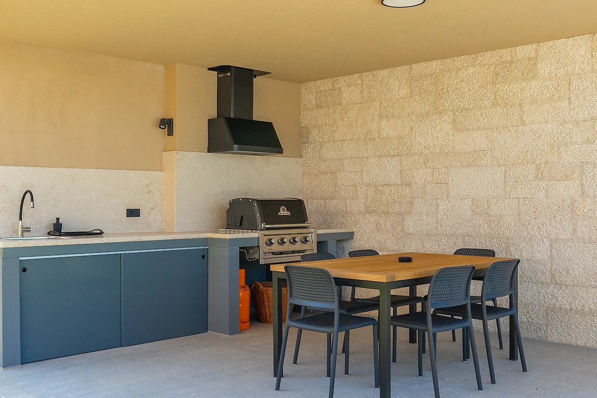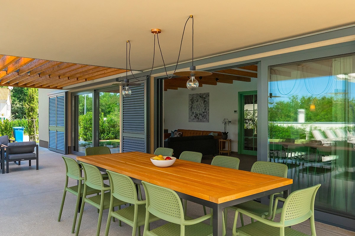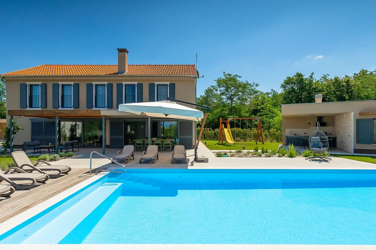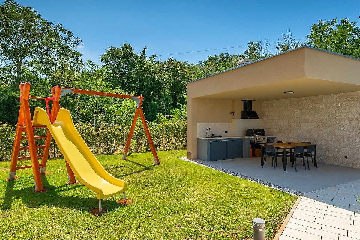 Oltre agli interni raffinati e arredati con gusto, Villa Pinca vi stupirà con il suo giardino di 1300 m² con 4 aree lounge. Accanto alla piscina di 50 m² ci sono 7 lettini, mentre sulla spaziosa terrazza esterna si trovano un tavolo da pranzo con 10 sedie, un'altalena e un comodo divano con poltrone. Accanto alla villa si trova un edificio aggiuntivo con una terrazza dotata di cucina estiva con grill e un tavolo con 6 sedie. Non c'è davvero fine al piacere in questa villa, e con così tante aree relax, c'è spazio per grandi gruppi di amici o famiglie. I bambini possono giocare nel parco giochi all'aperto e ci sono anche un set da ping pong, attrezzature per il badminton e giochi da tavolo. L'ampio cortile è ideale per chi desidera portare in vacanza il suo animale domestico.