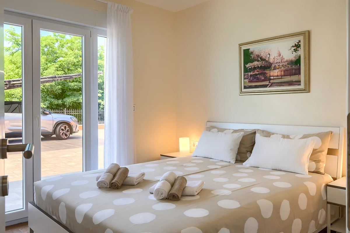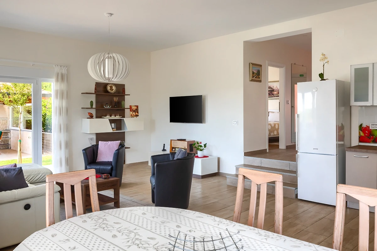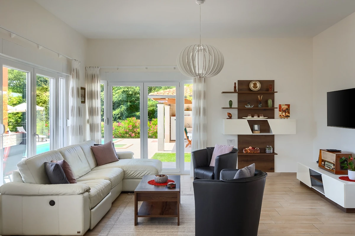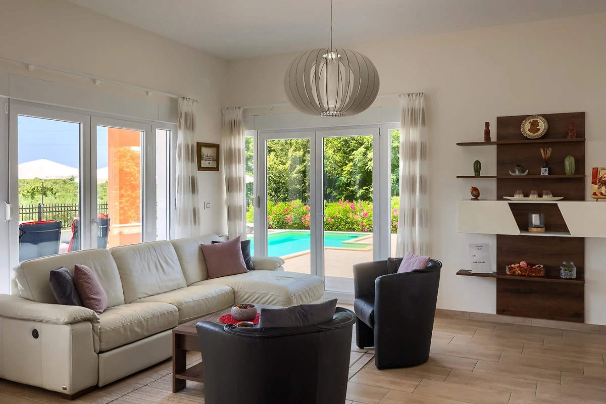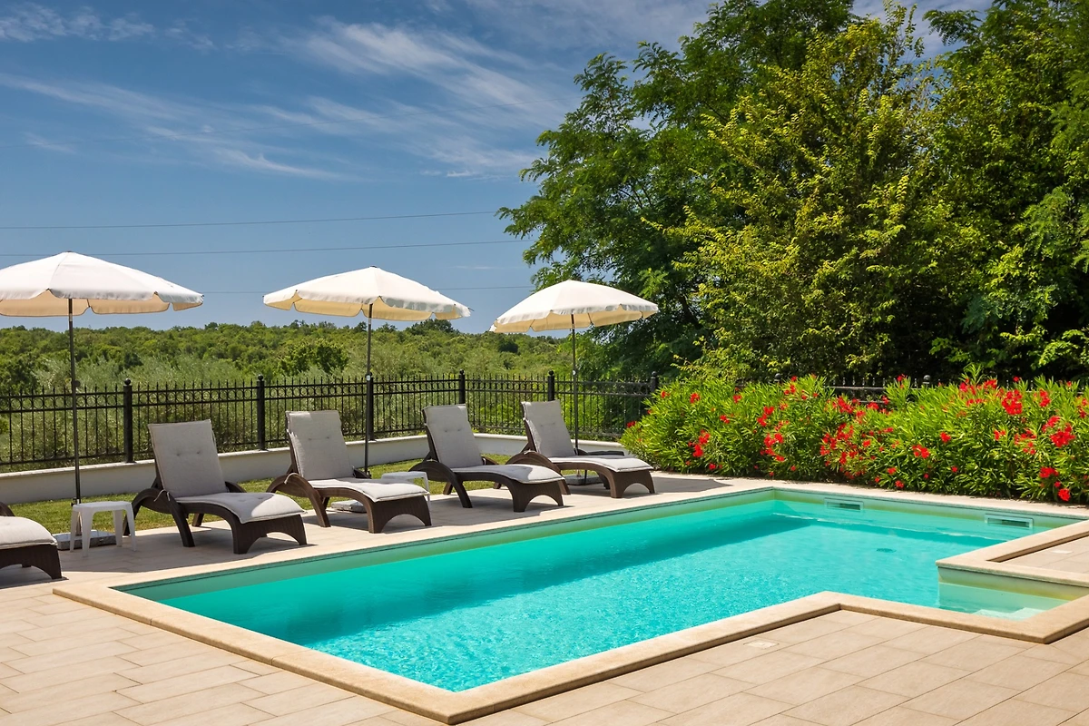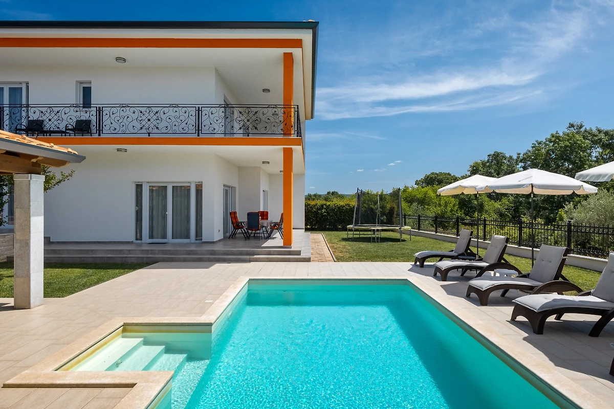 L'elegante Villa Eva si trova nel tranquillo villaggio di Kaštel, vicino a Umago e alla costa nord-occidentale dell'Istria. Circondata da un'incantevole vegetazione all'interno della penisola, Villa Eva si estende su una superficie di 186 m² con 4 camere da letto e 4 bagni per 8 persone. Godetevi il paesaggio e i suoni pacifici della natura nel giardino ben progettato, rilassatevi a bordo piscina e trascorrete del tempo di qualità con la vostra famiglia nella zona pranzo all'aperto mentre i bambini giocano sul trampolino - un vero idillio istriano.