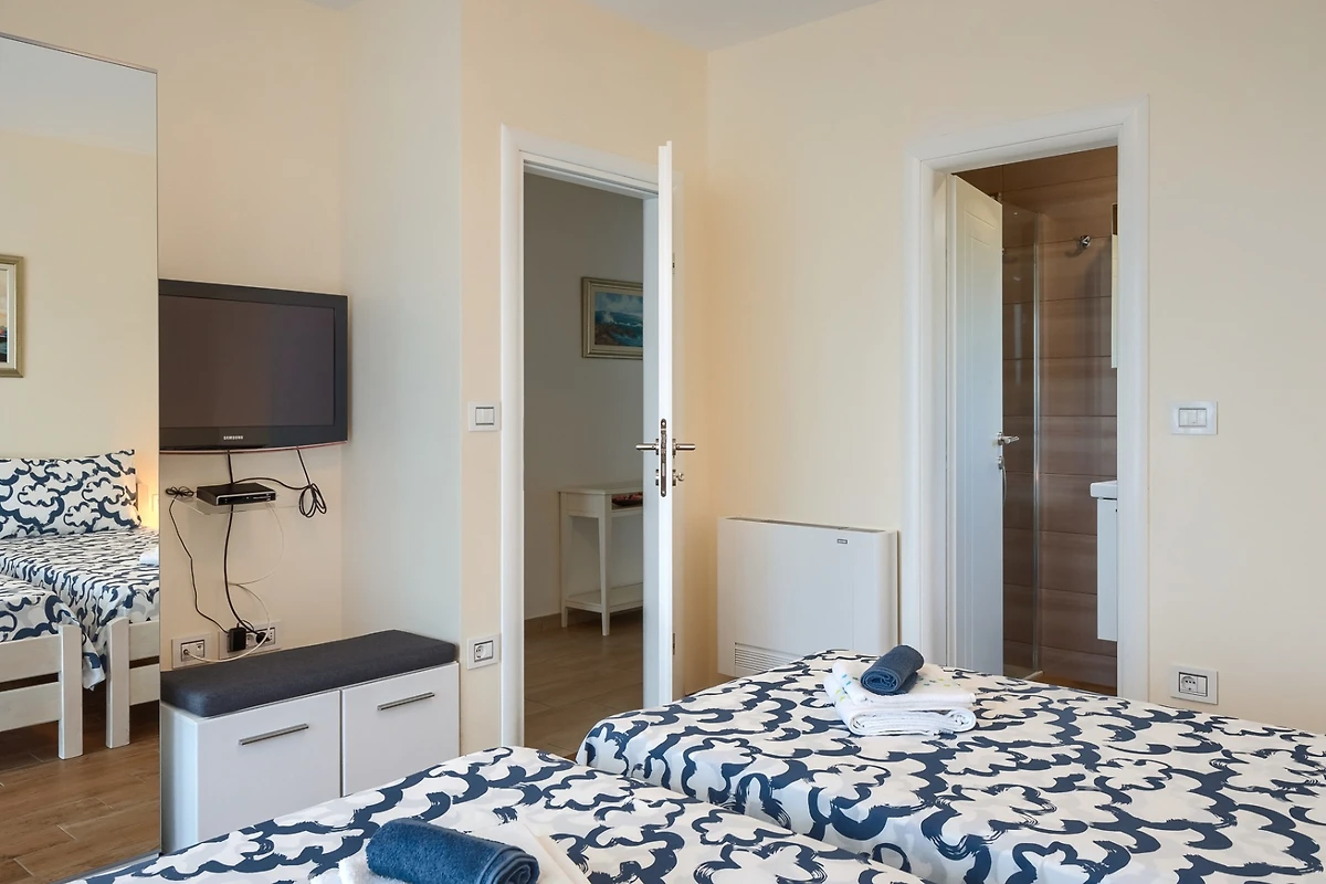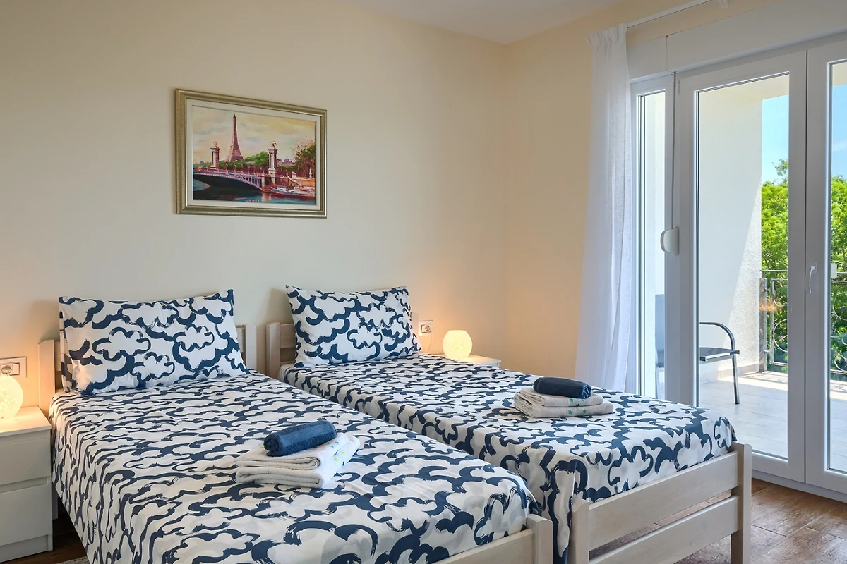 Villa Eva è vicina alla pittoresca città di Buie: vi consigliamo di visitare il centro storico sulla collina e la chiesa di San Servul del XIV secolo. A breve distanza in macchina da Buie, la città di Momiano vanta un suggestivo castello del XIII secolo ed è nota per il suo famoso vino moscato. Potrete inoltre godere della migliore offerta gastronomica nella gemma costiera di Umago, che dista solo 13 chilometri dal villaggio di Kaštel. Adorerete l'affascinante città storica, ricca di attrazioni monumentali e accompagnata da una deliziosa offerta di cibi e bevande. Durante la vostra permanenza, fate una gita al promontorio più lontano della Croazia, che vanta una vista mozzafiato e il più antico faro ancora in funzione sull'Adriatico.