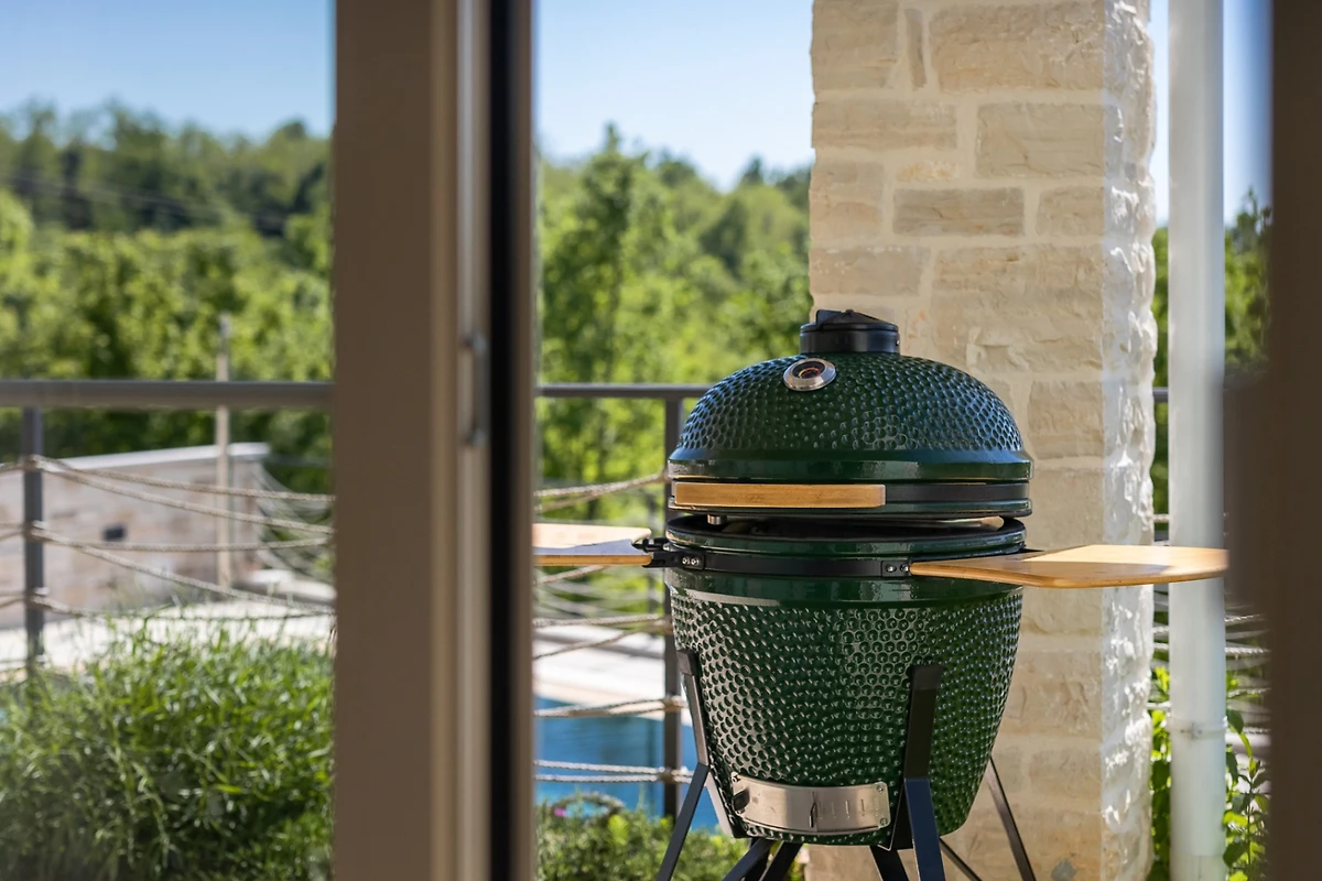 Rilassatevi presso la piscina all'aperto di 31 m², ideale per il nuoto e l'esercizio fisico mattutini. Dopo il bagno, riposatevi sulle sdraio del solarium lastricato. C'è anche una griglia sulla terrazza della villa, così preparare pasti leggeri diventa ancora più semplice e veloce. Gli elementi in pietra rendono l'esterno di questa villa ancora più suggestivo e il giardino verde e curato è una vera oasi di relax. Il cortile è recintato e quindi sicuro per i bambini, ma anche per i vostri animali domestici.