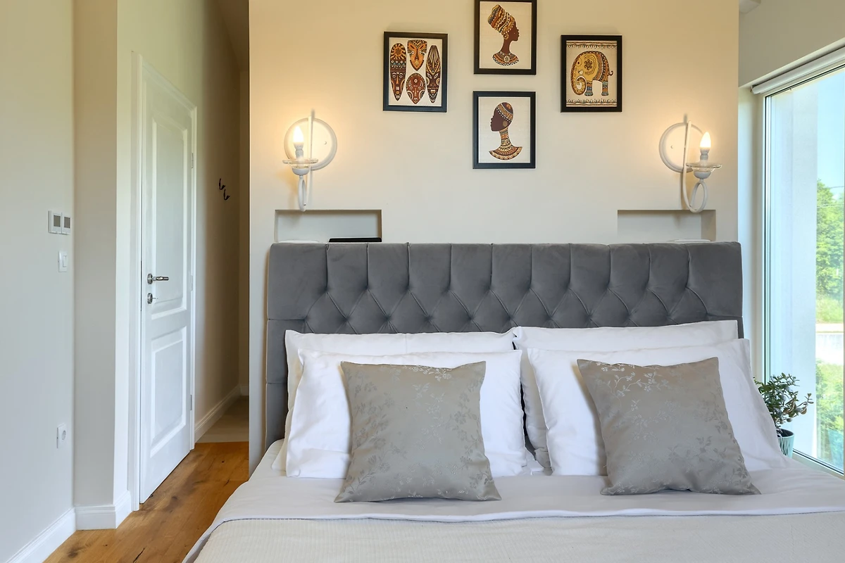 Ci sono un totale di 4 camere da letto in villa Vita. Uno al piano terra, i restanti 3 al primo piano. Ognuna è dotata di un comodo letto matrimoniale e di un bagno separato. I toni neutri delle camere da letto sono conditi con dettagli poco appariscenti, che conferiscono alle stanze un aspetto raffinato. Doppi lavandini, cabine doccia in vetro e materiali di produzione accuratamente selezionati contribuiscono alla sensazione di lusso. Una camera da letto al primo piano ha un'uscita su un balcone separato dove puoi bere il tuo caffè mattutino o goderti il cielo stellato di notte.