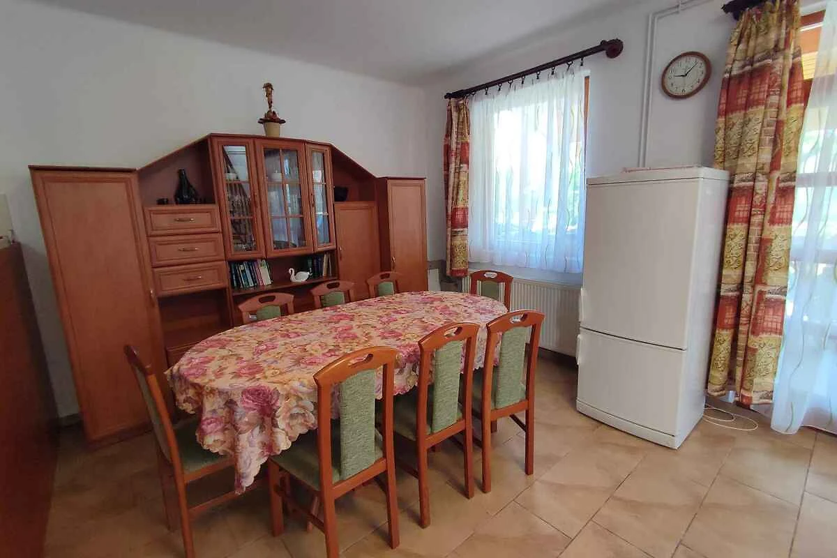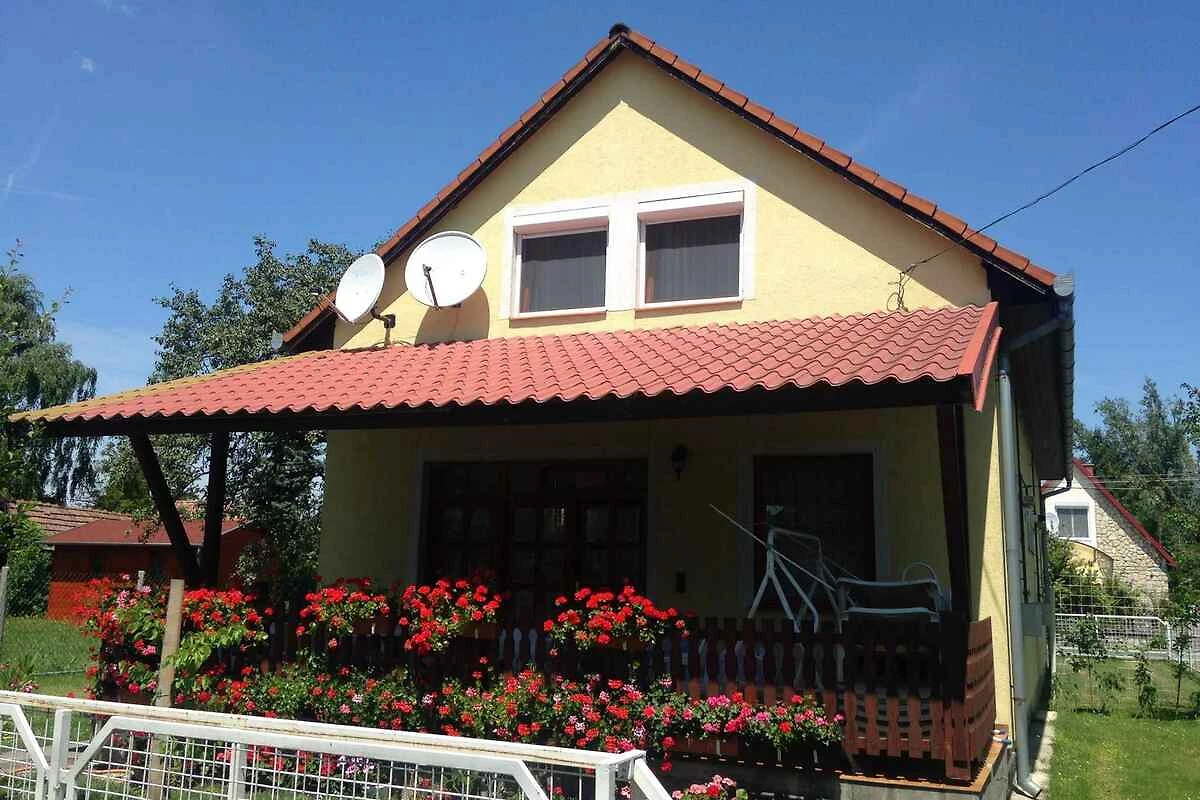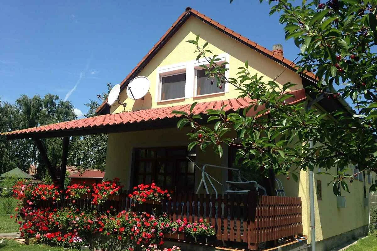 Balatonmáriafürdő. La casa vacanza si trova in una trama del giardino chiuso, grande 250 mq con prato e fiori, delimitata da una recinzione. Il proprietario non abita nella casa o nella proprietá. Trovati 2 proprietà di vacanza identiche (2 Casa indipendente). L'accesso avviene vicino a una strada secondaria (asfaltata). Parcheggio (per 3 auto) sulla proprietà.
