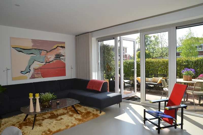 In una zona tranquilla e verde del villaggio degli artisti Bergen si trova il moderno appartamento per vacanze "Boendemakerhof".