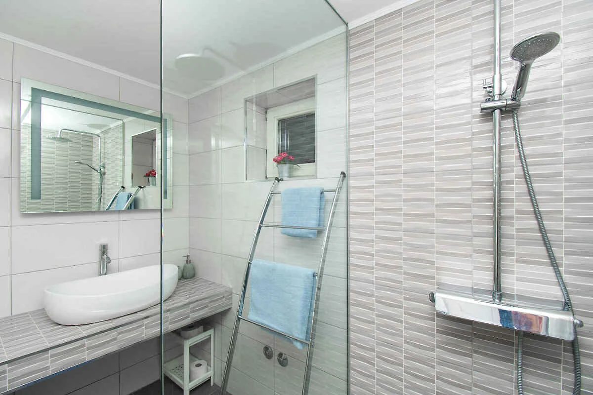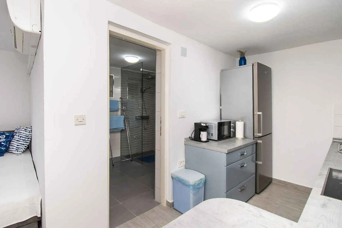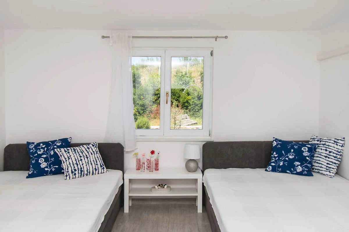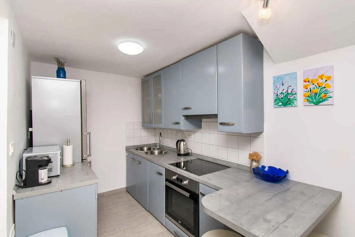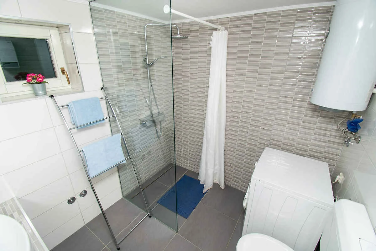 L'appartamento per vacanze si trova in un condominio ed è arredato in stile moderno. La proprietà si trova in una zona residenziale, ai margini del paese. Anche per la vista dalla proprietà sul mare e per la posizione tranquilla e soleggiata, la dimora è apprezzata. A disposizione per l'uso: doccia da giardino, possibilità di grigliare, terrazza e mobili da giardino.