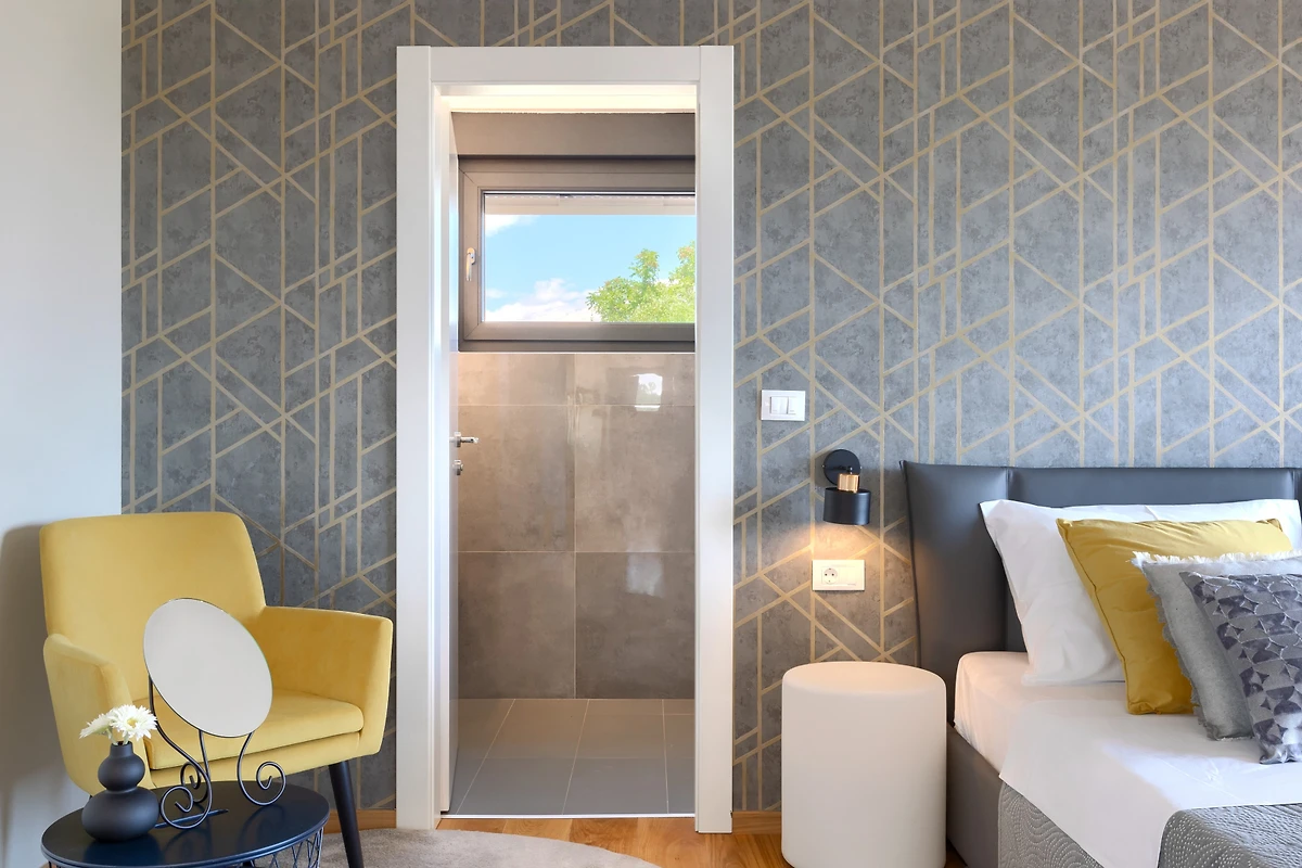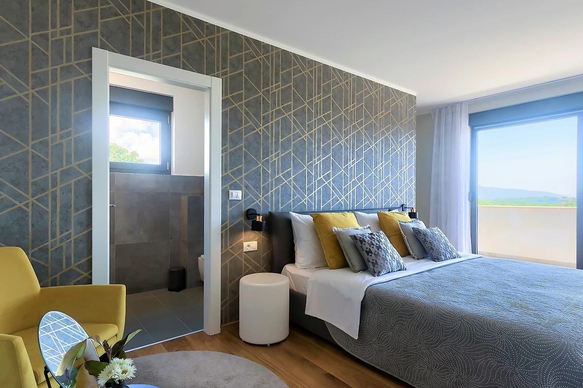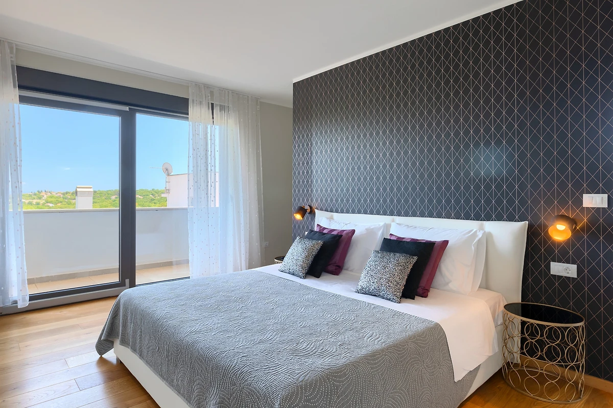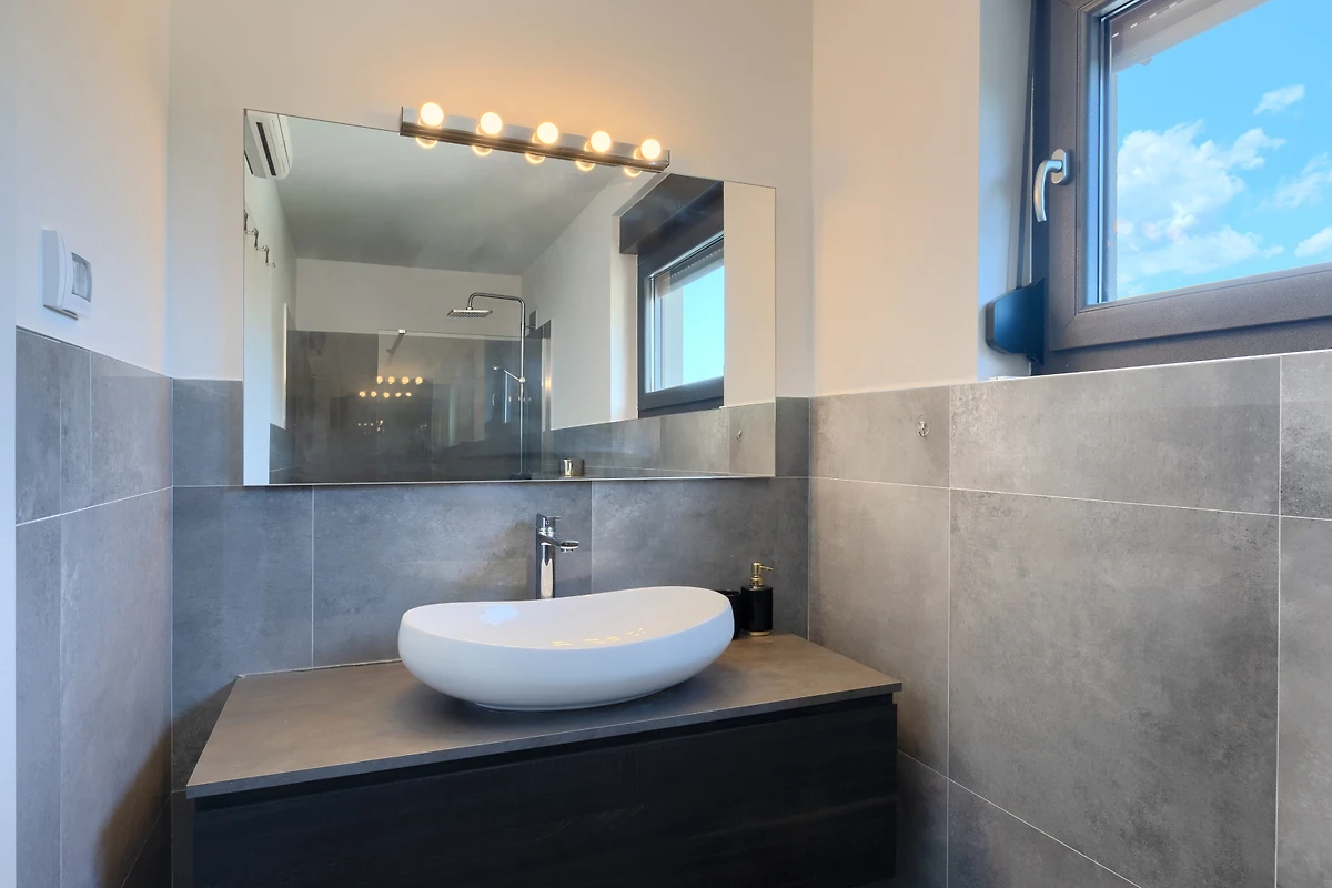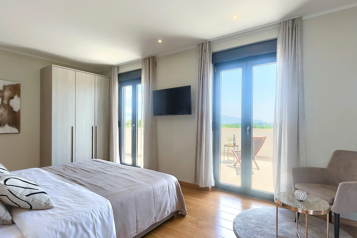 La merce è creata anche da 3 spaziose camere da letto al primo piano della villa. Con letti matrimoniali, anch'essi lussuosamente arredati, hanno accesso ad un balcone con vista sulla campagna. Se scegliete la villa Hedone Rakalj sono a vostra disposizione ben 5 bagni, ognuno attrezzato e decorato nei minimi dettagli. Enormi cabine doccia e design di prima classe ti faranno sentire come se fossi in un hotel a 5 stelle.