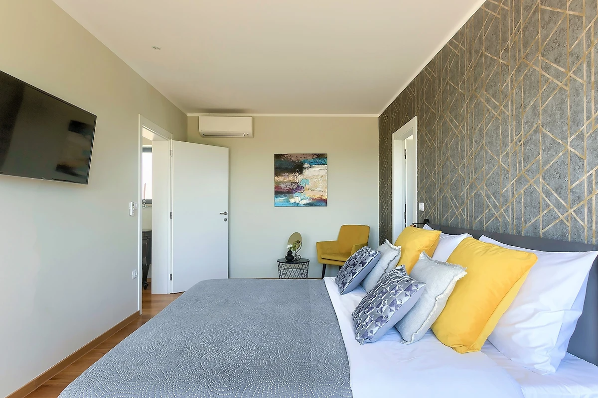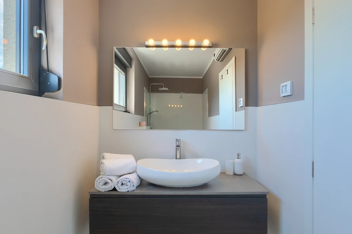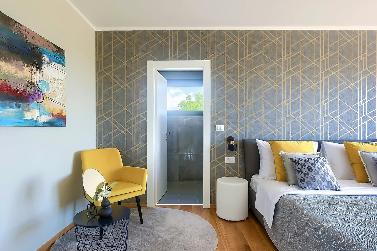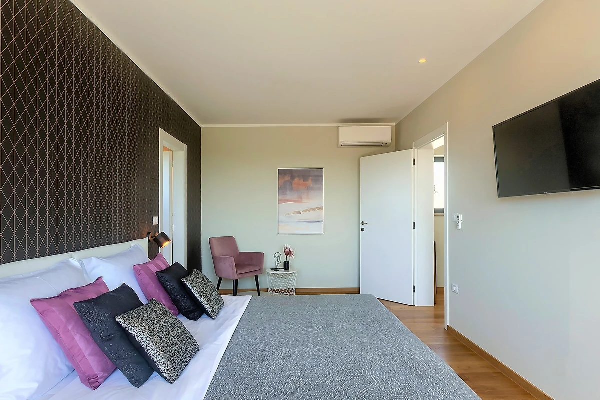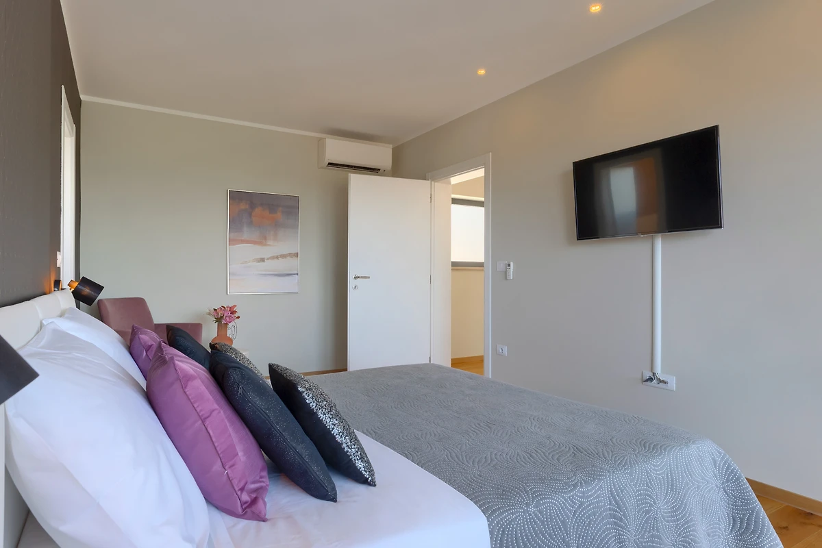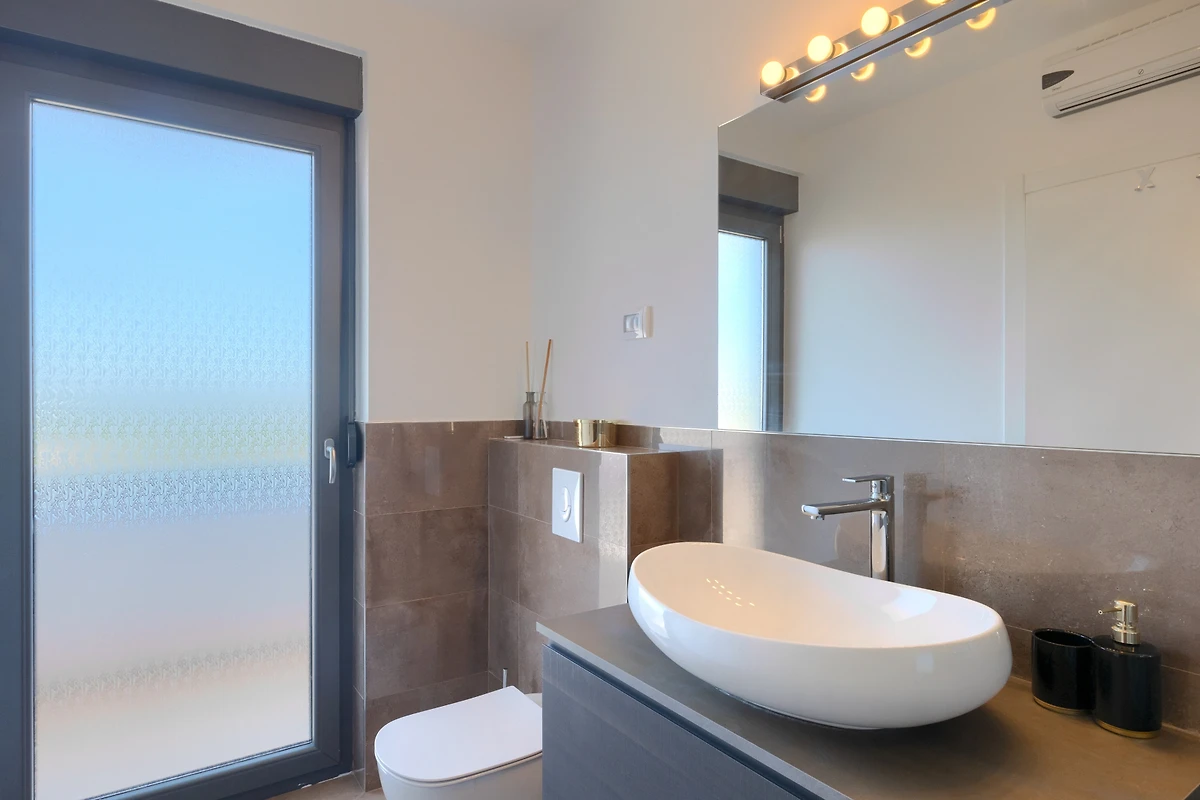 La merce è creata anche da 3 spaziose camere da letto al primo piano della villa. Con letti matrimoniali, anch'essi lussuosamente arredati, hanno accesso ad un balcone con vista sulla campagna. Se scegliete la villa Hedone Rakalj sono a vostra disposizione ben 5 bagni, ognuno attrezzato e decorato nei minimi dettagli. Enormi cabine doccia e design di prima classe ti faranno sentire come se fossi in un hotel a 5 stelle.