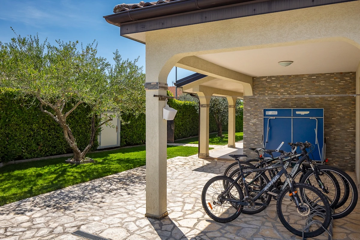 Avendo a disposizione biciclette a noleggio, avrete l'opportunità di esplorare i dintorni della villa su due ruote e di vivere in prima persona la bellezza dell'interno dell'Istria. La piccola città di Buie, dove la vita è semplice e rilassata, si trova vicino alla villa. Anche voi potrete assaporare una dose di questo relax passeggiando per le strade di questa pittoresca cittadina ed esplorando il ricco patrimonio culturale della regione. Se avete voglia di mare, non preoccupatevi: le città costiere di Umago e Cittanova sono a soli 20 minuti di macchina, dove potrete non solo nuotare, ma anche gustare ottimi cibi e bevande e concludere la giornata con la vista di uno spettacolare tramonto.